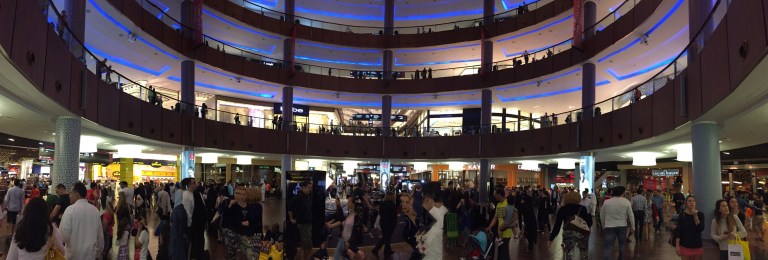 After coming down on the fastest elevator in the world I went into Dubai Mall. The elevator travels at a speed of 10 meters per second making the journey down in about sixty seconds. The Mall itself covers an area of about fifty football fields and hosts all the major high street brands that anyone could think of. The place was packed and I found out that it is open until midnight daily. This is a shoppers paradise.