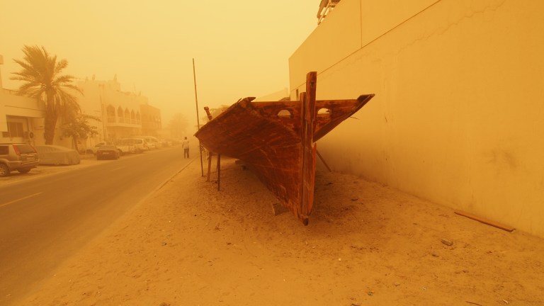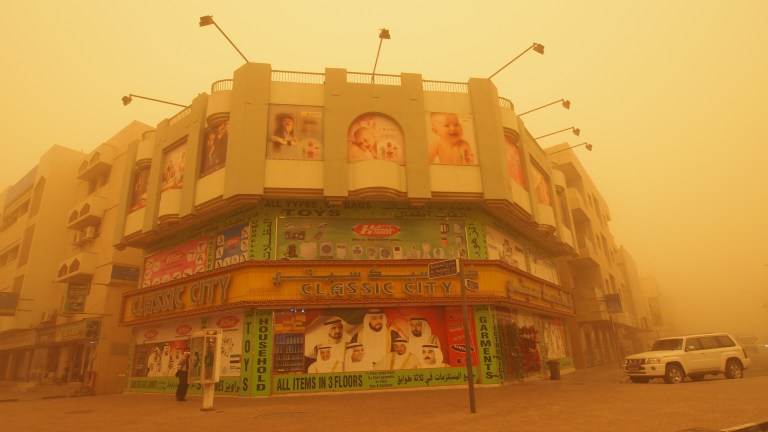 I quickly realized that this would be a great opportunity to take some cool photos. Dust storms like this don’t occur that often. It is a bit disorienting to be in such a storm. I couldn’t orient myself to any landmark and only had the Google map with the directions to the hotel to guide me. It’s a good feature that it kept the map and the GPS placed me in precisely in my position.