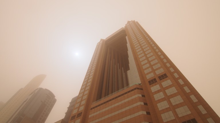 The view from up here is spectacular. I was hoping to capture the sunset but the sandstorm clouded the horizon in the distance nevertheless, there was plenty to see from up here. The buildings that looked so big on the ground were miniature from up here.