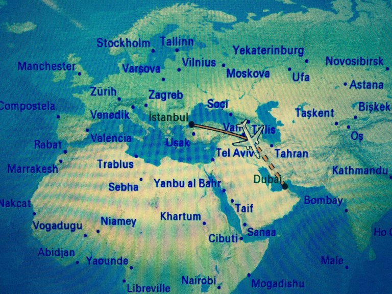 It is just after midnight and I am at the departure gate waiting for boarding. The flight has already been delayed officially by then minutes but as the time approaches there is still no announcement regarding boarding. There are quite a few people waiting to get on. We are divided up into five groups to facilitate loading. The announcement to line up in our respective groups is made a lot later than expected and the first group the business class enters but is held at the door before the gangway to the plane. At this point everyone else is lined up and the waiting to get in continues. The waiting goes on and on and some have to sit down while others voice their displeasure at the attendant waiting there on his own. We eventually get on and the plane begins to leave about an hour after the stated time. Being here at the airport I can see why the plane was late for my South Africa trip. I needed to sleep since it isn’t a long flight to Dubai and my check in at the Hotel isn’t until three. I fell asleep and was woken up by the food that was being served. It was hard to sleep after that. Soon we approached Dubai and the city couldn’t be seen from the air. Having passed all the airport controls I decided to take my time getting to the hotel. It was seven a.m. in the morning and a coffee and a snack was in order. I decided on taking the metro to the airport.