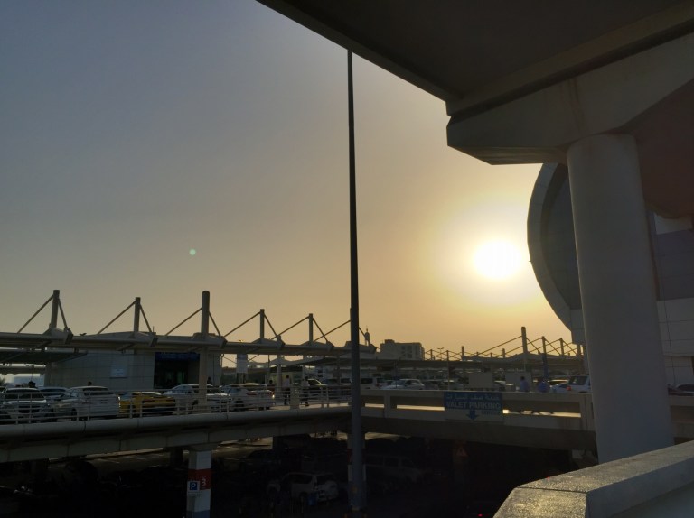 This slowed my progress a bit but I still had plenty of time to make it. After picking up my bag I tried to buy a ticket from the ticket machine found near the bus stop but it was unable to give me one. At least it returned the cash I put in. I figured that there were no tickets available and decided to walk up the street to the bus station located there. The ticket machine there seemed a bit off as well and a guard that was standing there offered to help. He said that he watched me walking back and forth between them and wanted to help. Good thing I went to the station as there was a ticket office which was able to sell me the appropriate ticket. I originally planned to bus to the metro and train it from there to the airport but I noticed that there is a direct bus to the airport and decided to take it. It gave me a chance to see more of the city. It passed through some of the parts I visited yesterday and saw much more. It’s a really bustling city in those older parts. The buildings are much smaller too. The traffic though was much heavier than I anticipated and the estimated hour turned into more. The traffic kept moving and it soon the airport was soon close. An airport employee asked me which airline I was taking. He suggested I get off at Terminal One sine I wasn’t flying with Emirates Airlines. It was a good suggestion saving me valuable time to check in. After the check in I had just enough time for a coffee and a call to my hotel. I would be arriving at close to midnight and the hotel had complimentary airport service and would have a driver waiting for me when I landed. It was time to find my gate. It was a busy time to try to get through passport control. All these delays to pass through and get there resulted in me arriving fifteen minutes before take off. It was kind of nice timing. Soon the plane took off for the two and a half hour flight. The capitan announced that the tailwind and efficiency of the loading we would be arriving early. I felt good with everything going so smoothly.