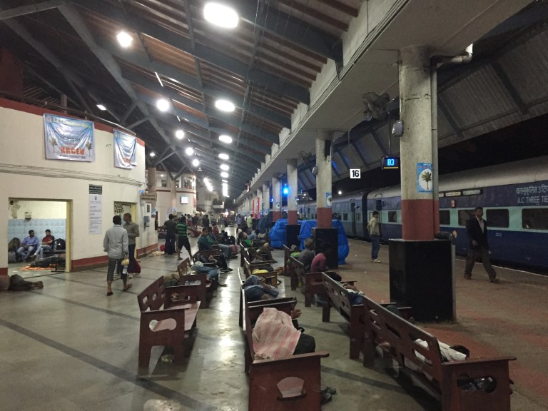 After getting there I planned on getting Uber to drive me to the Train Station. I’ve found that being a white person sets you up as a magnet for people charging more. They think you can afford the higher cost. I noticed that with the cab as he never started the meter and asked for a hundred rupees. It translates to just over a pound but that really isn’t the problem it’s not the amount it’s the principle. With uber I know how much it will cost from the estimate they send me and I know what my driver looks like. You don’t get that in a cab. The traffic around the roundabout was crazy. Horns honking all the time. It was a painfully slow process to maneuver around it and this traffic was further hampered by the roadworks in front of the buildings. The driver took a while to finally get to me. We were off and once past the crazy traffic it was a fairly speedy drive to the train station. I had more than an hour to spare. I sat outside in the shade with the rest of them watching as people moved along with all the wares they planned to take with them on their journey.