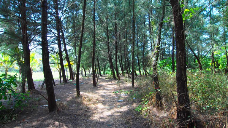 My complementary breakfast is only served between a certain time. I wanted to be sure to catch it and I had plenty of time for that. This may be the first time that what lies ahead is starting to sink in. I wanted to explore another part of this city so I went to Caranzalem Beach after breakfast. I didn’t expect it to be that deserted. But it gave me time to contemplate what is coming up. During the course of my journey I felt the blister develop and later disintegrate causing a little distress. I continued on undaunted though. The beach was long. I found an interesting path through the trees that cradle the coastline. The trees provided a welcome shade from the hot sun. I wanted to make it to a point on the map that could offer a potentially great spot for a photo. Unfortunately the gates prevented my further progress.