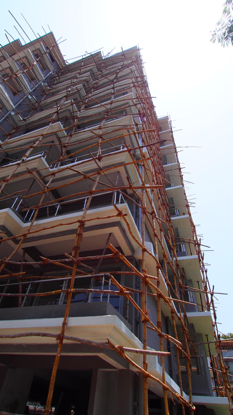 I ended up covering quite the distance today. I saw them working on the main road and checked out the scaffolding around the buildings. The organic feel of the scaffolding coupled with the straight edges offered an interesting contrast.
