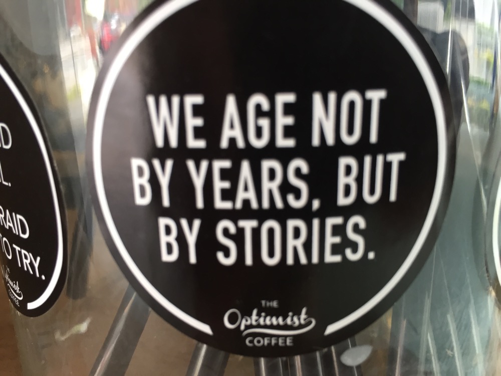 On my way I got an iced coffee from the Optimist Coffee joint outside a station. There were people taking photos with the slogans they had scribbled on their chalkboard. The stickers they had were a collection of different runs that they had made over time. All of them had some sort of positive message.