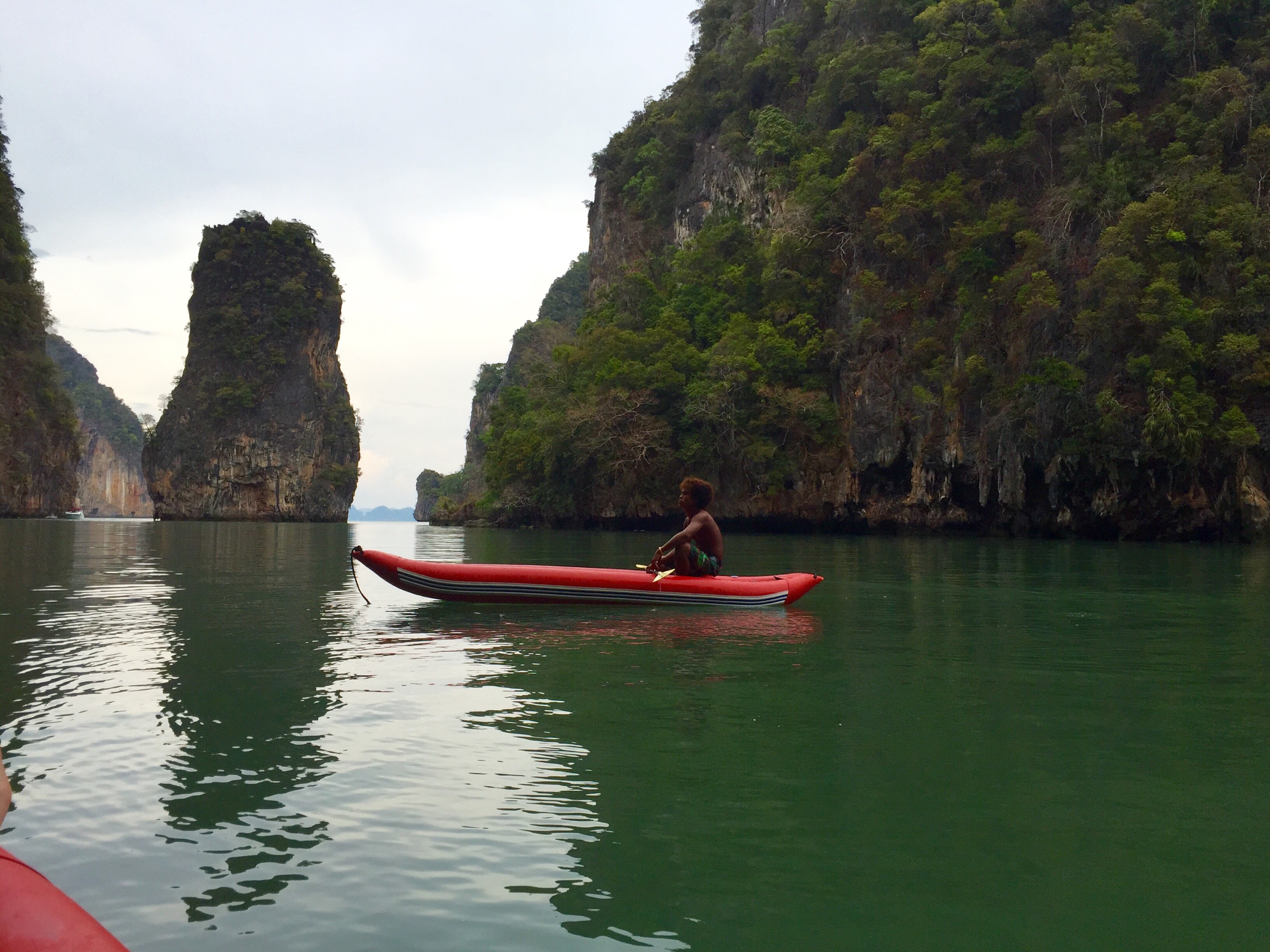 We had breakfast by the poolside on the patio and discussed what we were going to do and how. Today is our last full day on this island and we wanted to make the most of it. What better way than to visit some islands. The original goal was to go to James Bond Island made famous in one of the films that I’m too lazy to look up. When we got to the tour places we realized that we started this way too late. We settled on visiting Koh Hong and Koh Panak. This was a sunset tour that left at one o’clock ten minutes from now!