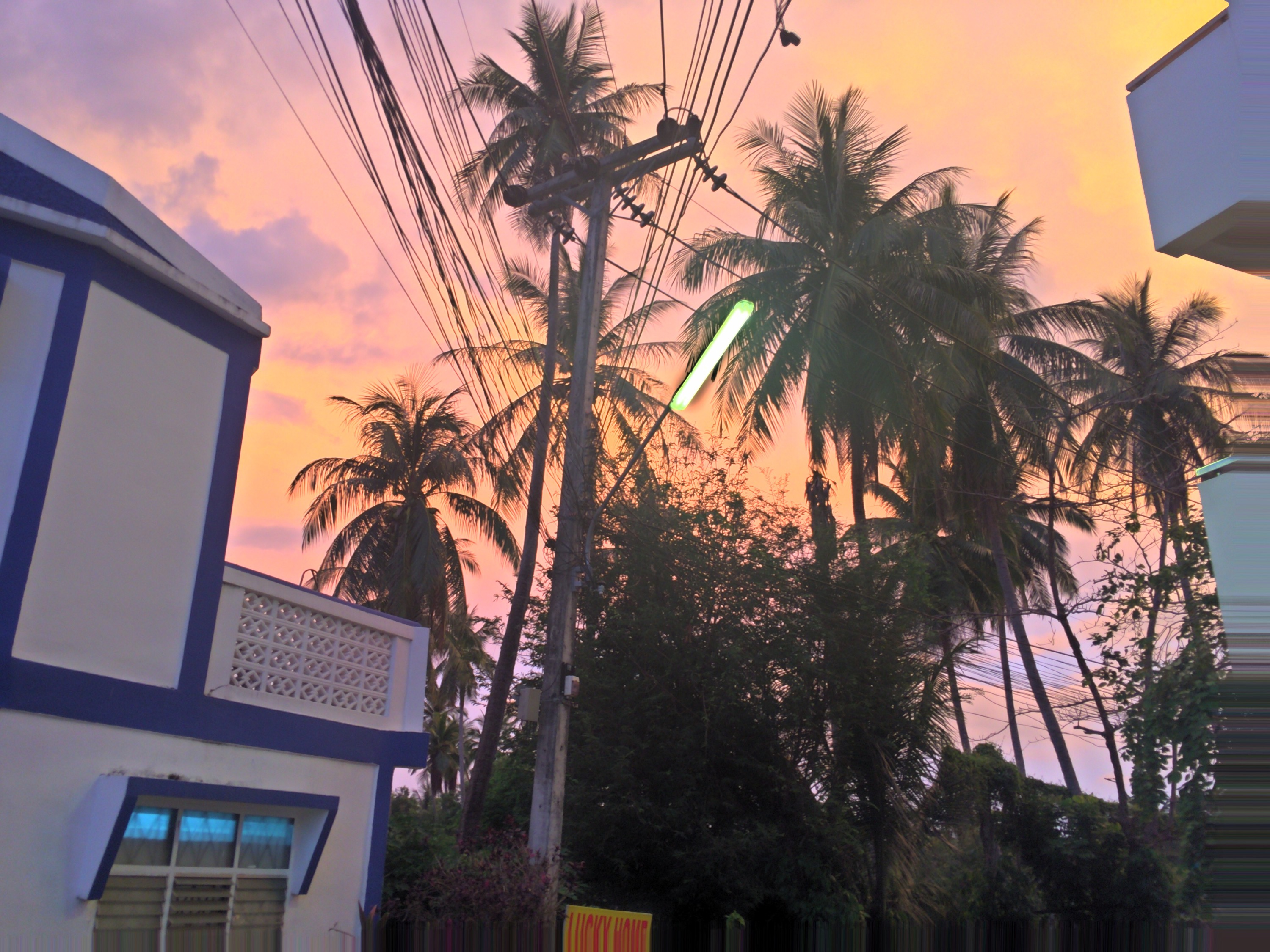 At a bar sitting around with a friend from Canada and his friends. It’s nice. We were supposed to meet at 2030. When we got here at 2000 we ordered some drinks and decided on what we were going to have for dinner. The service at the Islander was good and the food that we got was delicious as well. We haven’t really eaten that much today. After finishing dinner I contacted my friend through wifi and lo and behold he was there but I just didn’t see him as my back was turned to him. We talked about being out here on the island and caught up on life in general. It started to rain and we quickly moved under some shelter deeper in the bar and restaurant. There was a lot of sports on the televisions and we talked about what to do the next day. We decided to stay an extra day here in Samui. The journey to get here was so long and the atmosphere here so nice that it warrants that.