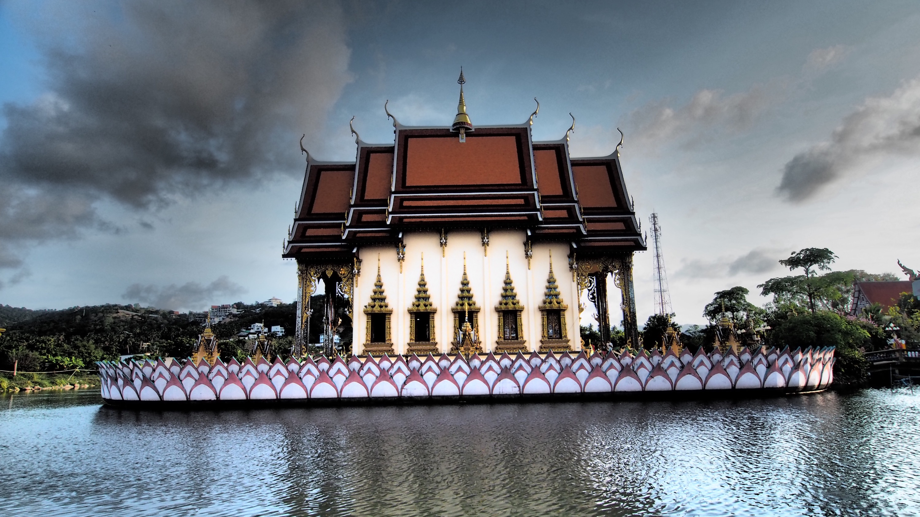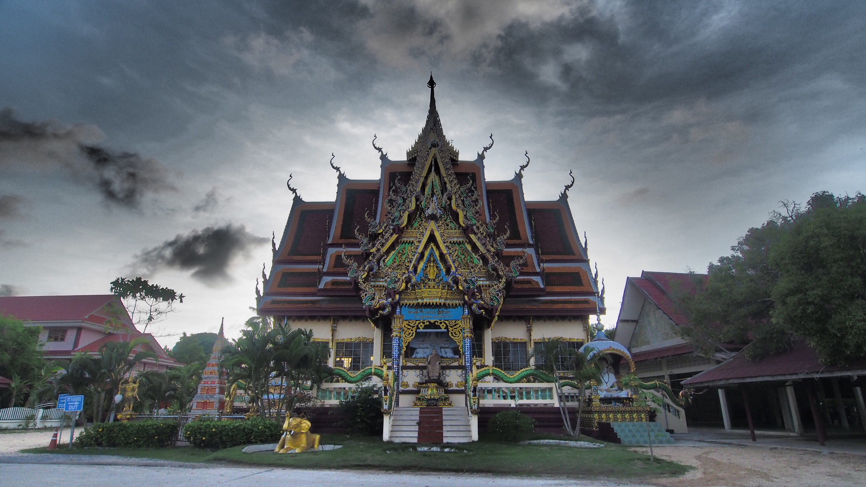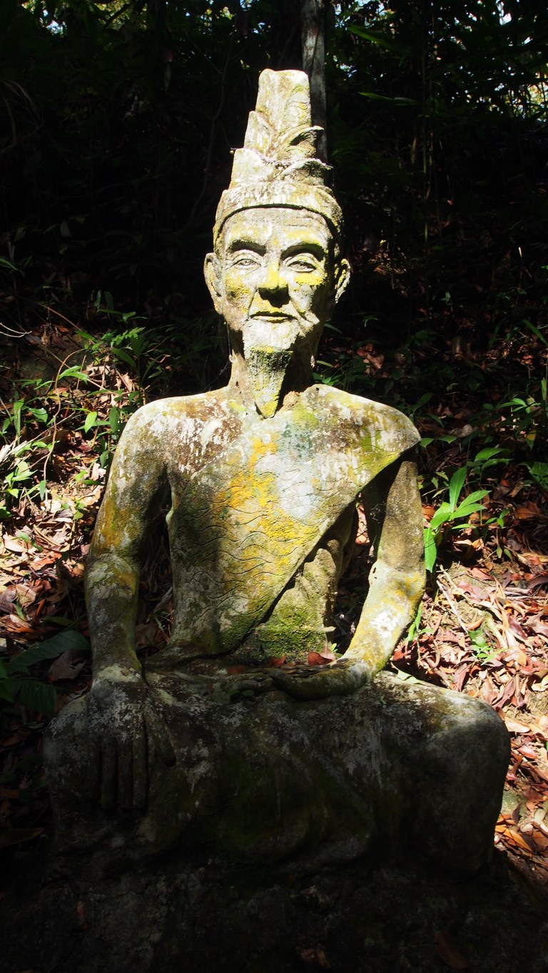 Even though Hiro has been on the island for a while he has never visited the Secret Buddha Garden. It is located in the middle of the island high on the mountain. As we made our way to the road leading up to the mountain location we stopped at a temple that housed the Mummified Monk (Wat Khunaram). As we got out and looked at the building housing the Monk the wind blew and blossoms started falling creating a magical mystical impression. There is something to synchronicity.