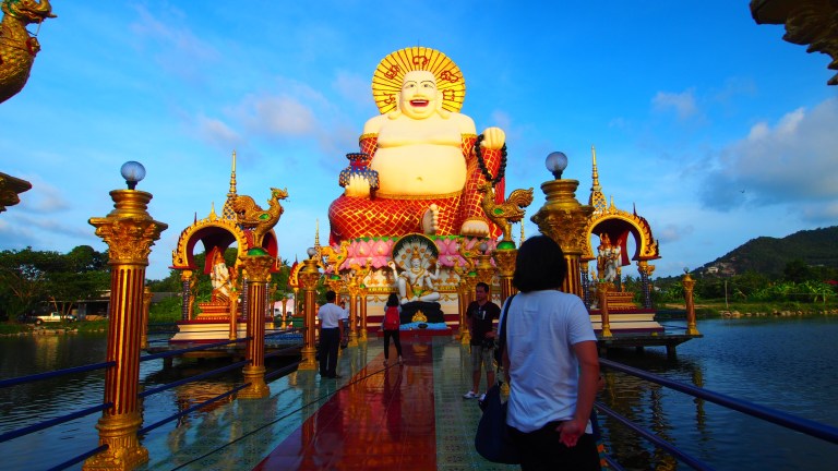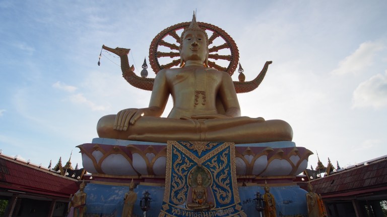 On our way down we were going to stop at a viewpoint but due to the principle of paying for parking and paying for the privilidge of walking a path we kept going down. We drove halfway around the island by the time we got to the Big Buddha Temple (Wat Phra Yai).