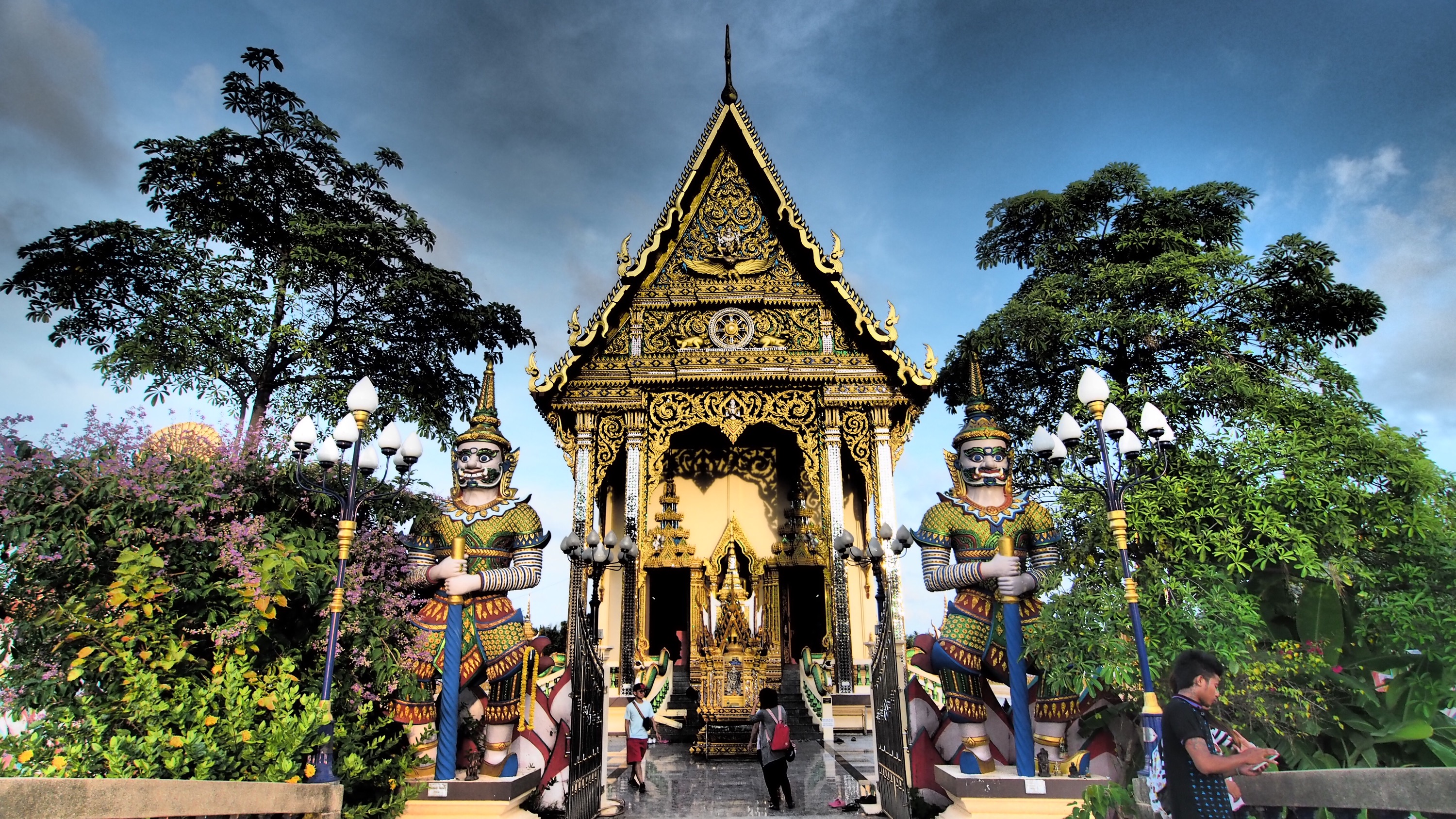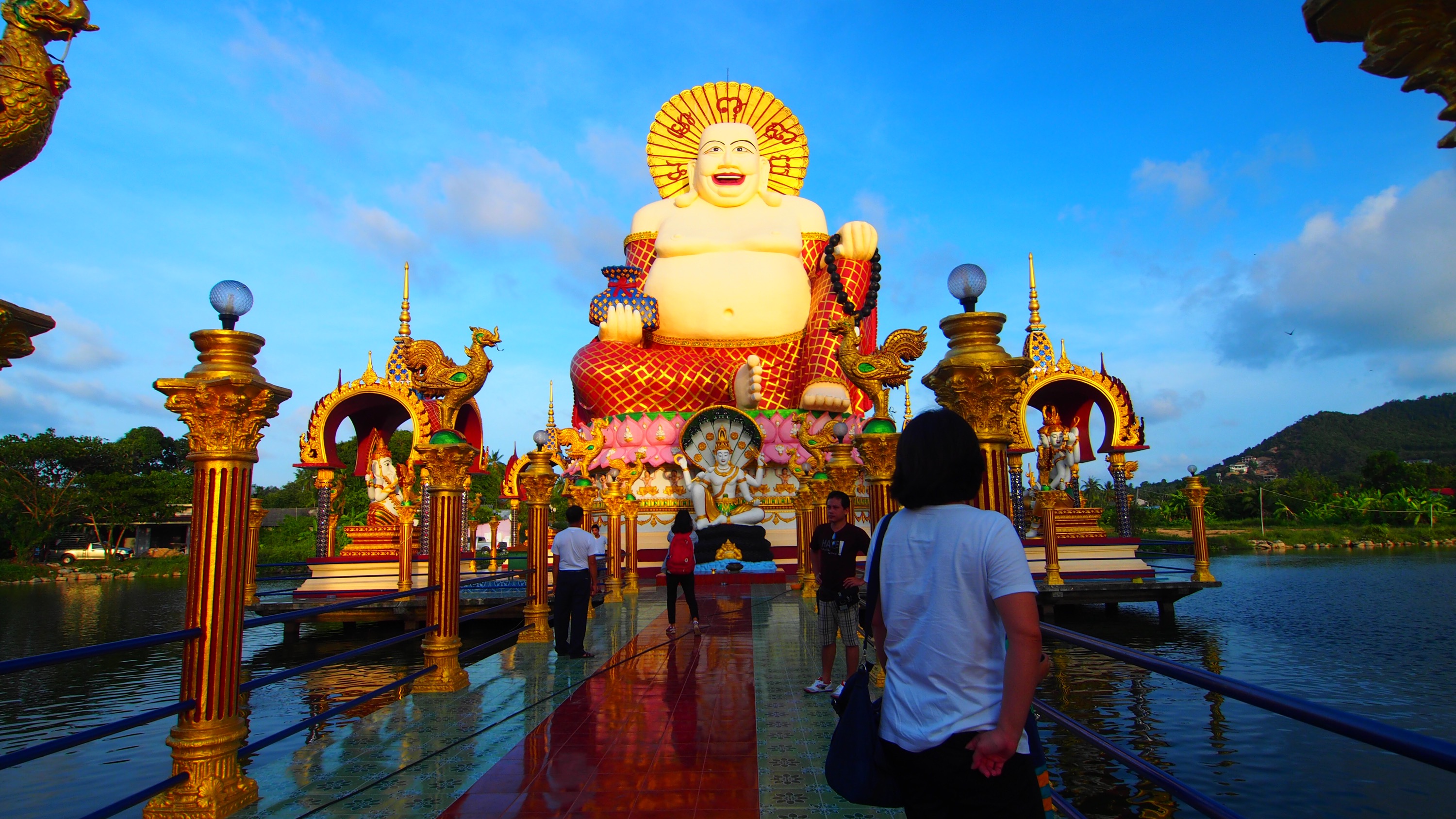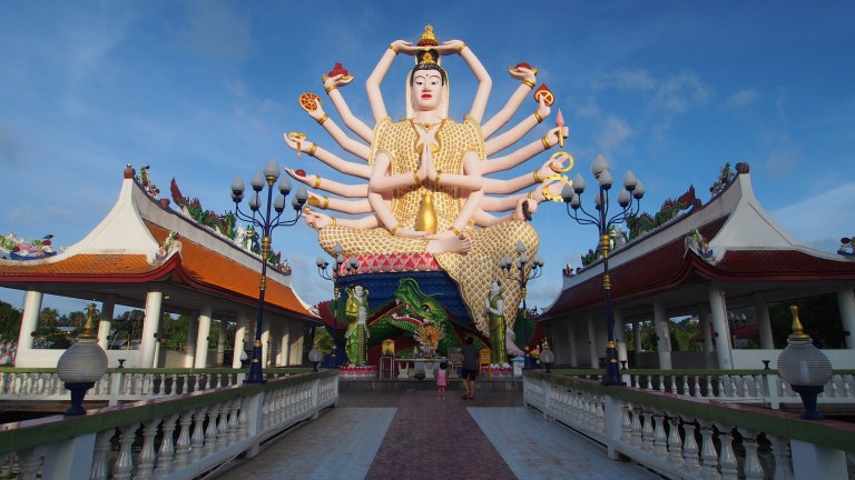 The last temple we went to is Hiro’s favourite on the island. It’s called Wat Plai Laem. From the description in my Thailand map it is a newer temple that incorporates Thai and Chinese design motifs.