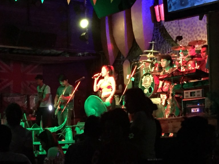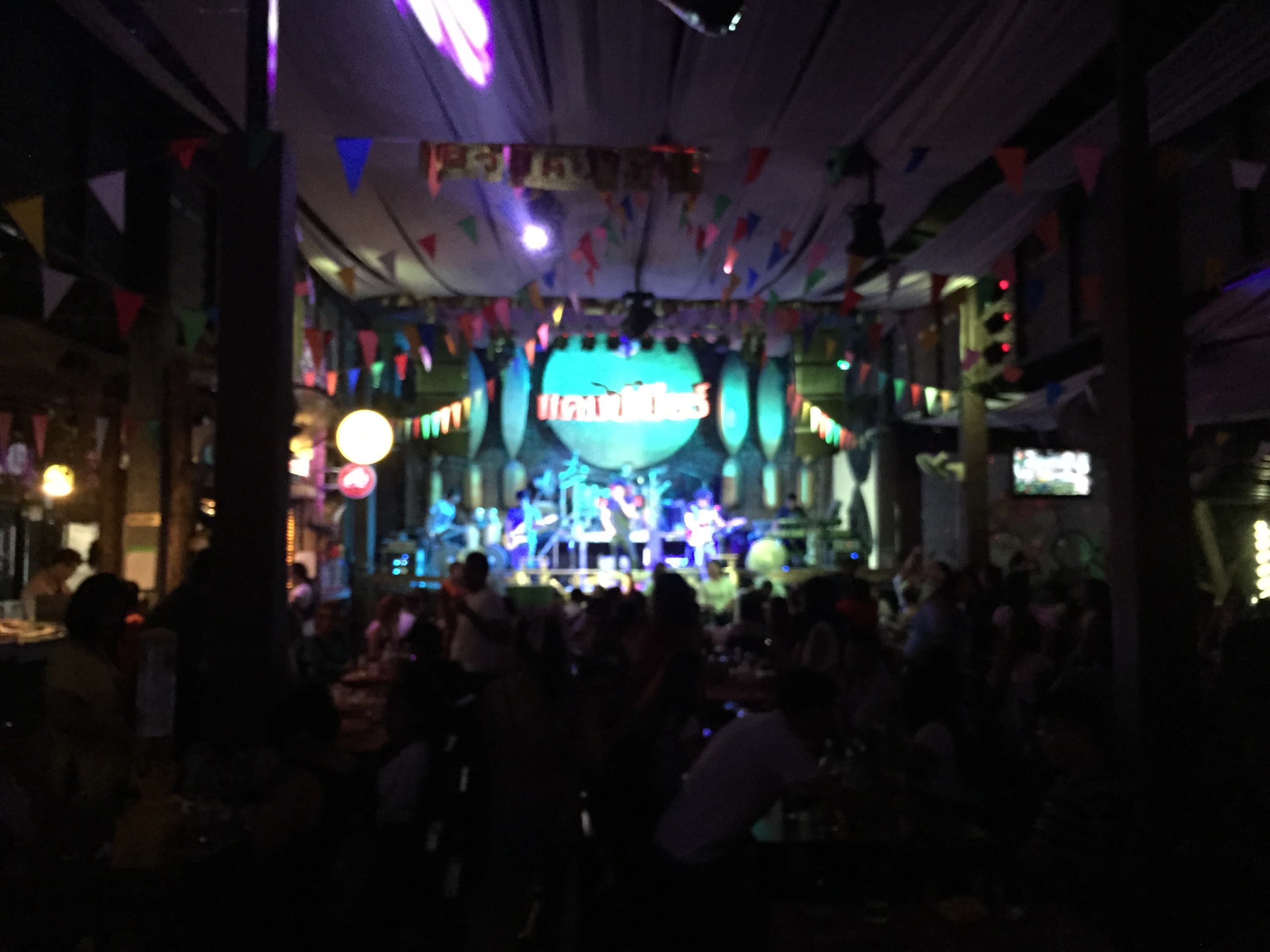 We had a beer at one of them and then we headed off to a “locals” bar. There were no other tourists there and my tanned face must have stood out. The place definitely had a vibe to it. It was first bumping to the beats before the band came on and started performing what was explained to me as “Thai country music”. It had a rock/ballad sound to it with various singers interchanging smoothly between songs. There was no pause for applause and adoration just one song after another. The crowd kept passing up drinks, money and cigarettes. The gifts were all accepted and the songs kept being performed.