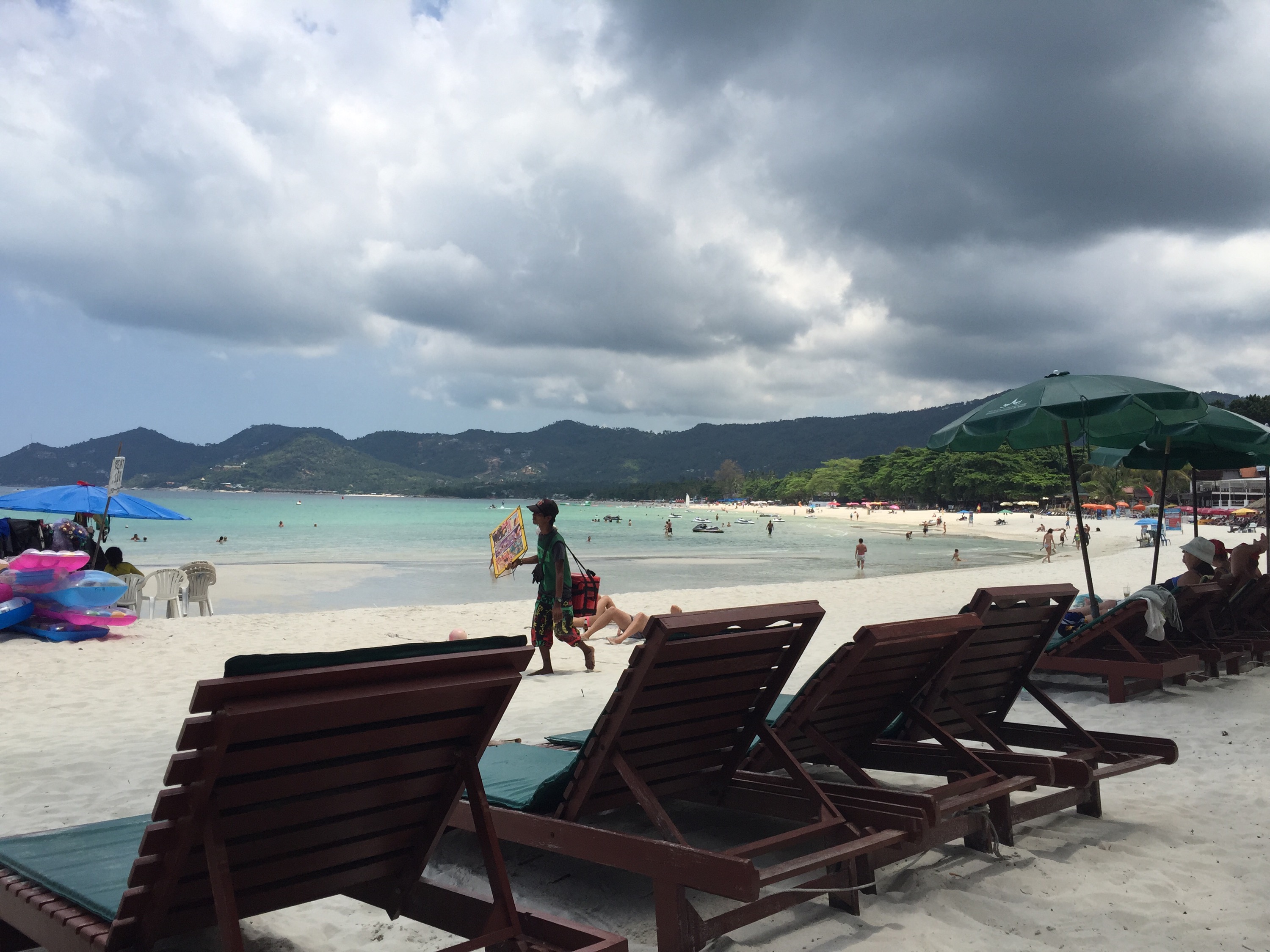 The mission wasn’t make it back to the Ark Bar. Its central to where we met for the fight and it’s one of the best places on Chaweng Beach. Getting in the water is refreshing even though it feels so warm. It’s prett clear water even when you can barely touch the bottom. The sand felt warm between the toes as I moved it with my toes. That soothing sensation of the toes having sand filter through them towards the earth. Some of those silicone crystals are still stuck to my feet. The line representing the dearth of the water as I walked along the shore towards the hotel. The culmination of the sun and heavy drinking induced an ounce of reason to today’s activities. The sun is setting on the distance drawing another day towards its conclusion. I’m going to Cambodia tomorrow.