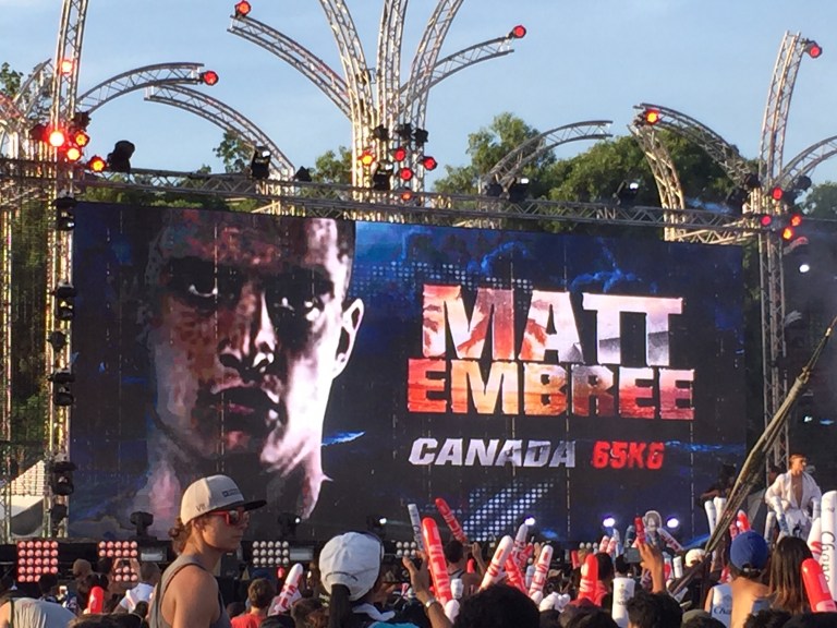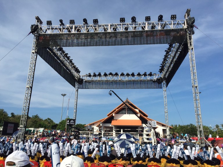 We had a few beers before going to the event. The doors were opening at 1500 and as we discovered they were first come first serve. We found the spot we wanted to sit in and waited until we could sit there. There was an order to how they filled the seats. There was time before the fights started and the sun caused perspiration to swell to the surface of the skin. We were all suffering but enjoying the atmosphere. “Thai Fight” is a brand of kickboxing fights where top Thai fighters fight with fighters from outside of Thailand. On this card there were fighters from Canada, France, Brazil and Russia.