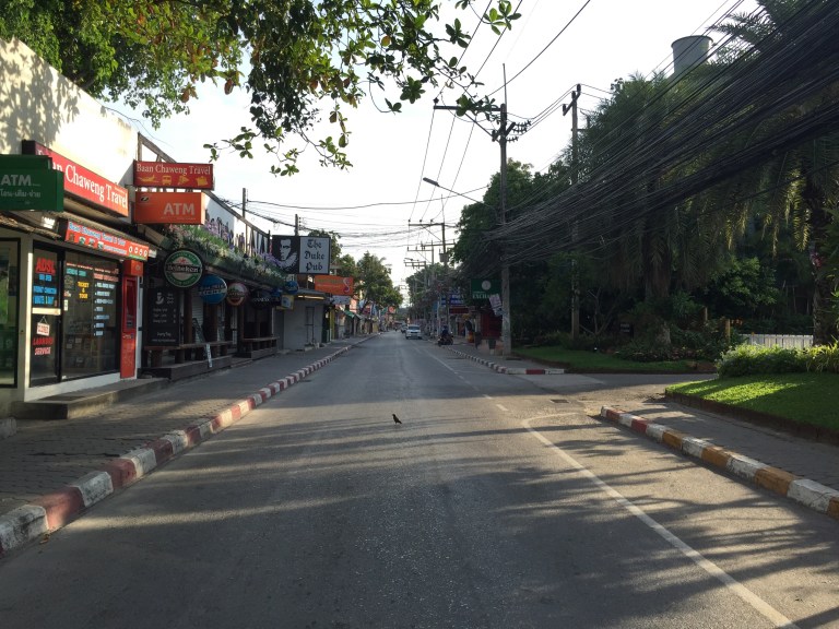 When I woke up I had a bit of a session and then I decided to get something to eat. There are really only two choices both of them are fast food chains. I went with the first one that came up along the road. Having a little bit of food even though it wasn’t breakfast food made a difference in my preparation to leave. The streets are empty save for stragglers from the bars and ladyboys returning home from an unsuccessful night. One of them stopped and looked at me before scooting away. I stocked up on essentials at the Family Mart. I’ve been drinking a lot of fluid and water to hydrate myself. Beads of sweat start forming even at this early hour. The temperature higher than is normally seen in London at the height of summer.