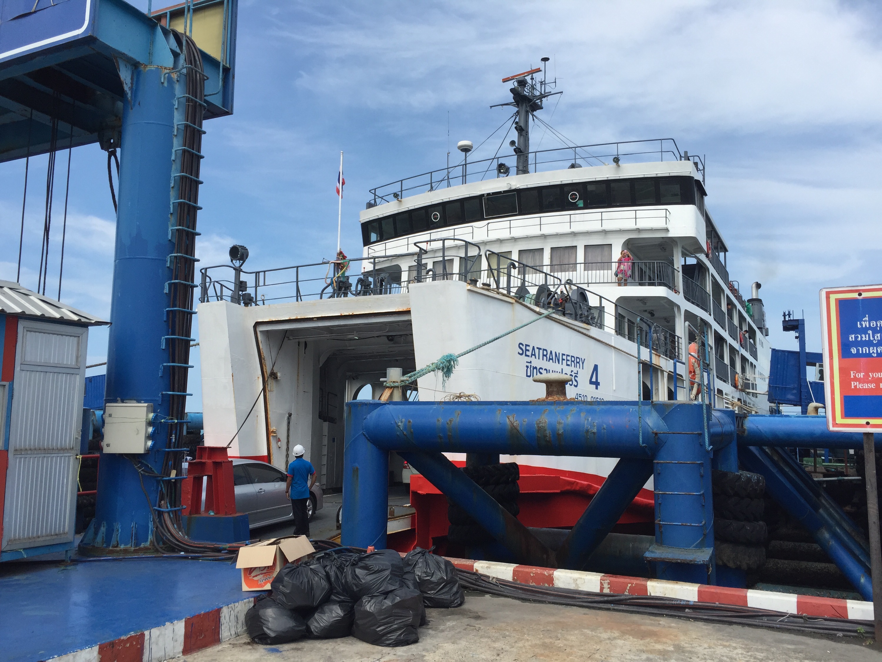 Minion the ferry now. It’s the biggest one I’ve been on here. The capacity is about 621 people plus the cars that also come along for the ride. Just before the ferry terminal I was switched from the minibus to the big bus. I got a card and a ticket at the terminal I’ve noticed that they like to heard the people as much as possible. It makes for better management of resources. I don’t like the waiting but what can I do? There is plenty of time to get to the airport. We haven’t started moving yet. I hope it’s soon.