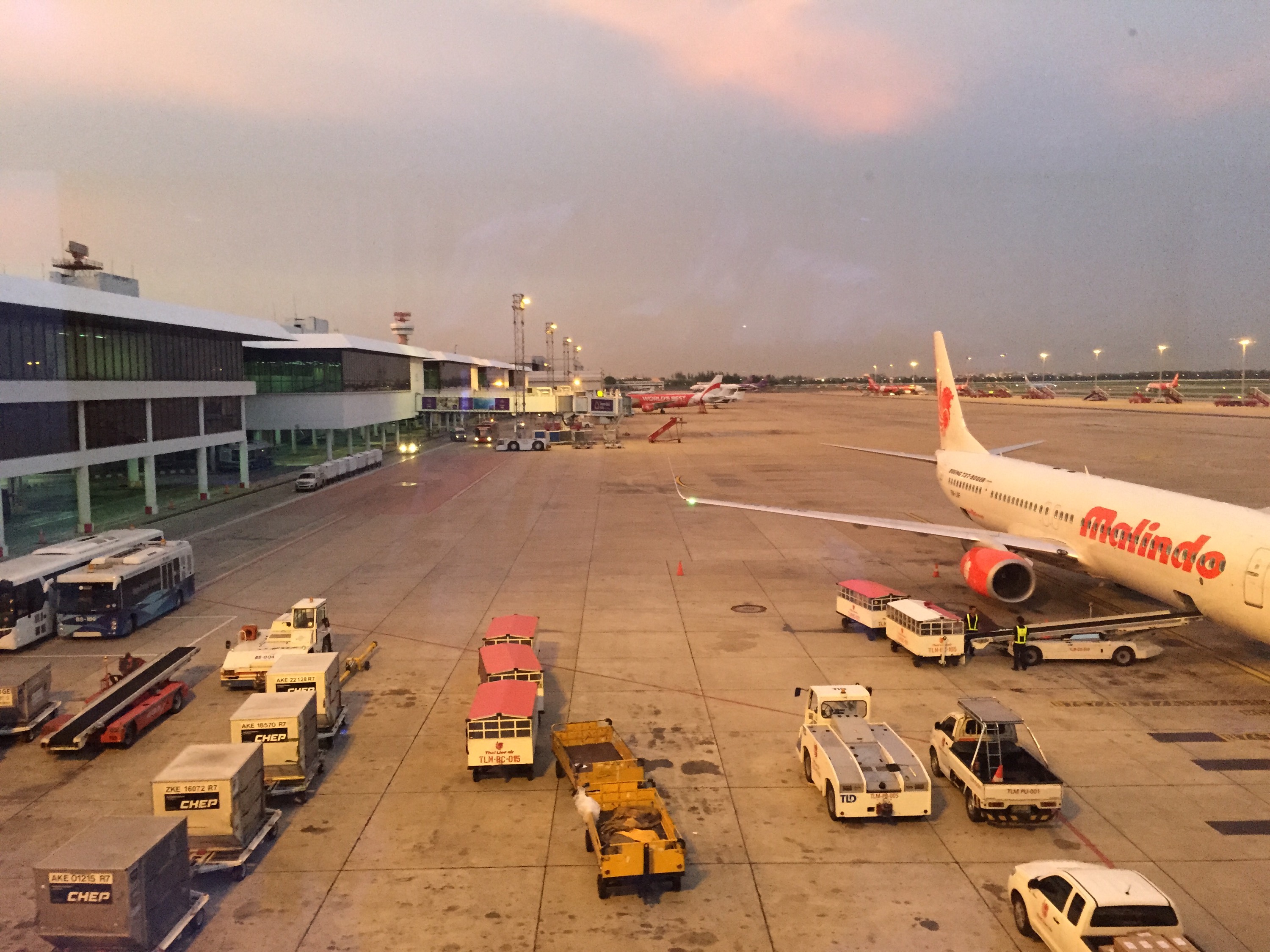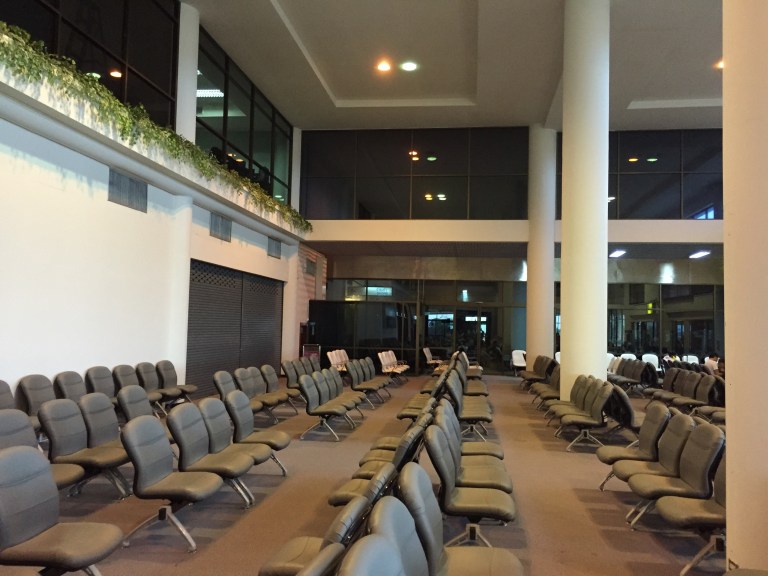For an aging airport this one isn’t too bad. I was one of a handful of people that was transferring to an international flight. They had the numbers wrong so we had to wait until the whole plane emptied before we could proceed to the next stage of our check in. The lights are starting to come on as it’s sunset time here in Thailand. I might get another snack and a coffee so that I can power nap again on the one hour flight to Siem Reap. I’ve been awake for a long time now. I wonder how bad my b.o. is. At this stage what does it matter everyone sweats here.