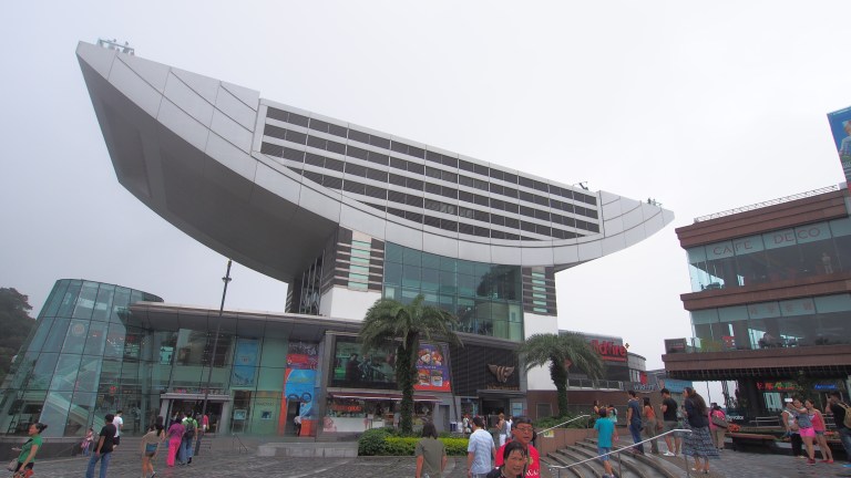 I’m sitting at the top of Victoria peak waiting out the sudden shower that began to fall. I purchased my ticket and went into the building to wait for the tram when all of a sudden a downpour began. I had the idea to come here after reading the beginnings of the itinerary pasted on the wall of the hotel that I’ll be staying at tonight. It doesn’t include a visit here and I was prompted and encouraged to visit here as a must see destination. I’m watching the whisps of clouds being pushed away by the sometimes strong wind. The rain has stopped falling I’m just enjoying a coffee and some lunch hike checking out the groups of tourists walking by. The longer I wait the better the visibility will be judging by the movement of the clouds.