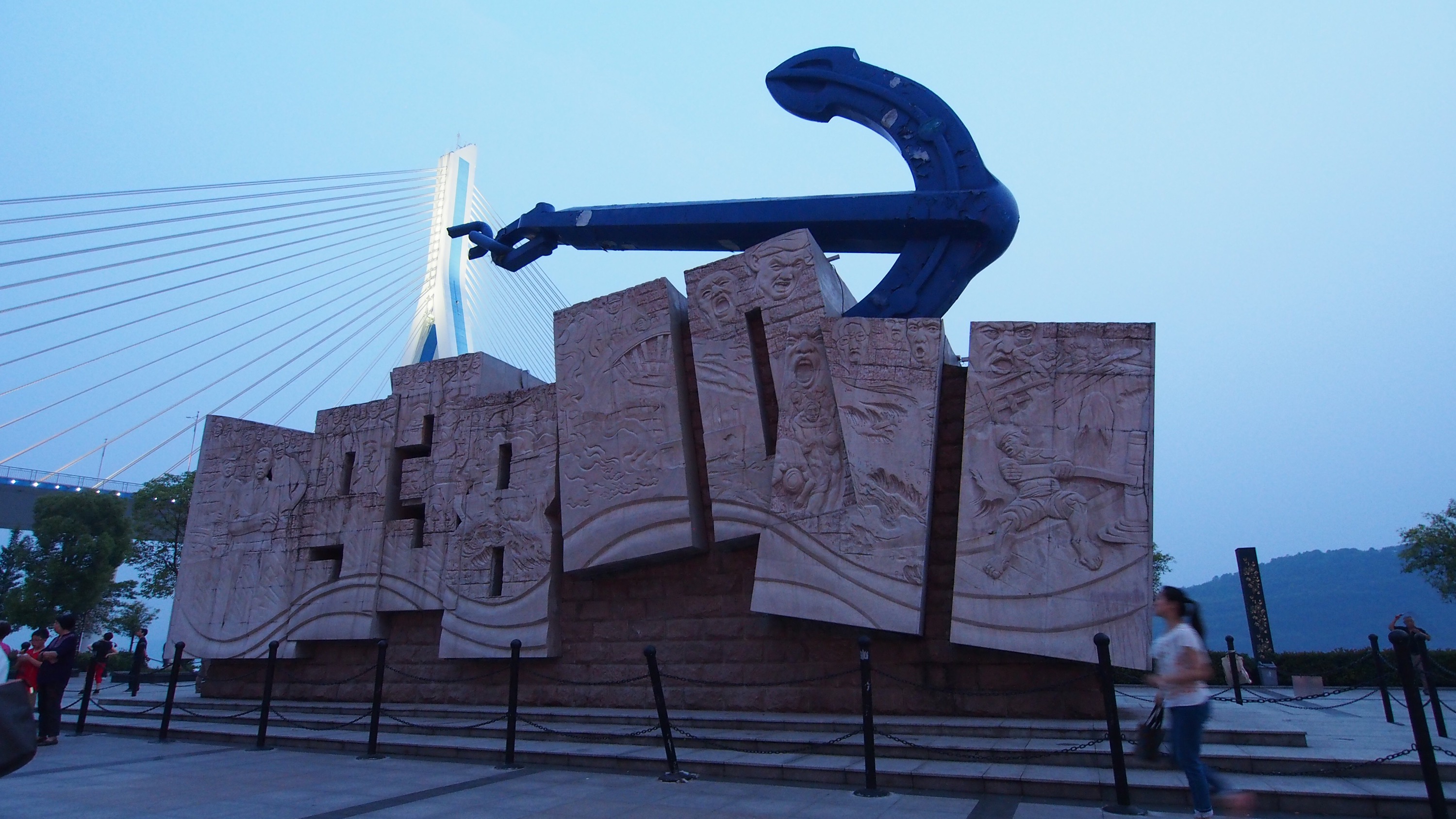 After my nap we were supposed to meet up at seven but that got pushed back until eight. We were meeting up to go and have another meal. They were barbecued skewers of beef and pork as well as some oysters. There is a market close to us along a road. Since I had an hour I decided to go for a walk along the rivers edge. There is an impressive bridge there that just beackoned to be photographed. I walked for a half hour in one direction to make sure I could get back in time.
