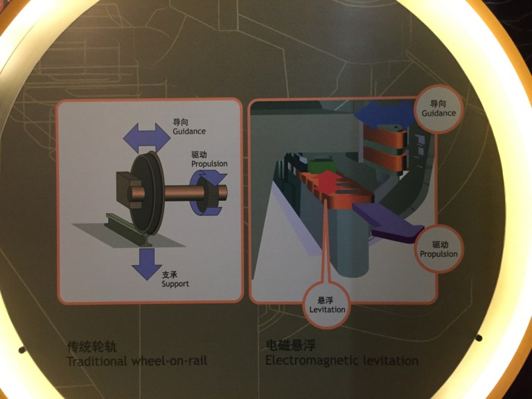 Getting to the maglev train required another journey on the underground. When we got to the station we first went into the museum that housed an exhibition detailing the technology employed by the system we were about to travel on. The line connects the airport to the city. When Harvey went to purchase our tickets he noticed that the train wasn’t operating at full speed at this time. There was no point to go on it when it travels at 300 km/h we wanted to travel at 471 km/h. These speeds are only in use at certain times of the day.