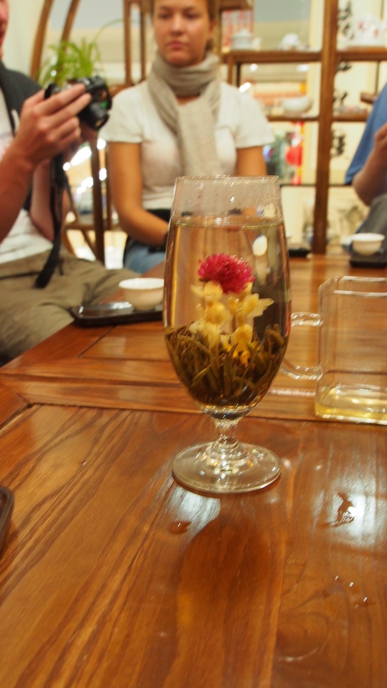 We went to the silk shop to look at genuine silk and I probably should have cleaned my hands better from the cotton candy. Then stood in line for a long time to get some really good dumplings. Finally we went to a tea tasting. Here we learned that the British don’t make their tea properly. It was educational and the teas were really good.