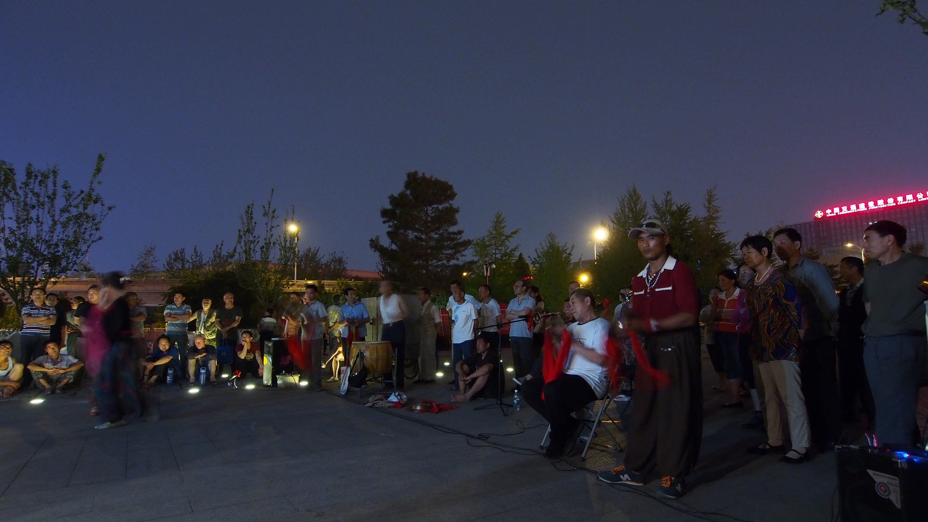 Things catch my eye like the people dancing in the park by the riverside or the little stall with interesting souvenirs. There are many here and some are more interesting than others. I kept going on passing over the freeway and then walking by the Llama Temple where I heard more music this time from a full on folk band or maybe they were just locals playing their tunes. It had a great rhythm to it and the old ladies interpretive dance was quite amusing to watch. There was a man there trying to fly a kite with lights flashing a pattern. He had a hard time getting it up as the wind was kind of weak.