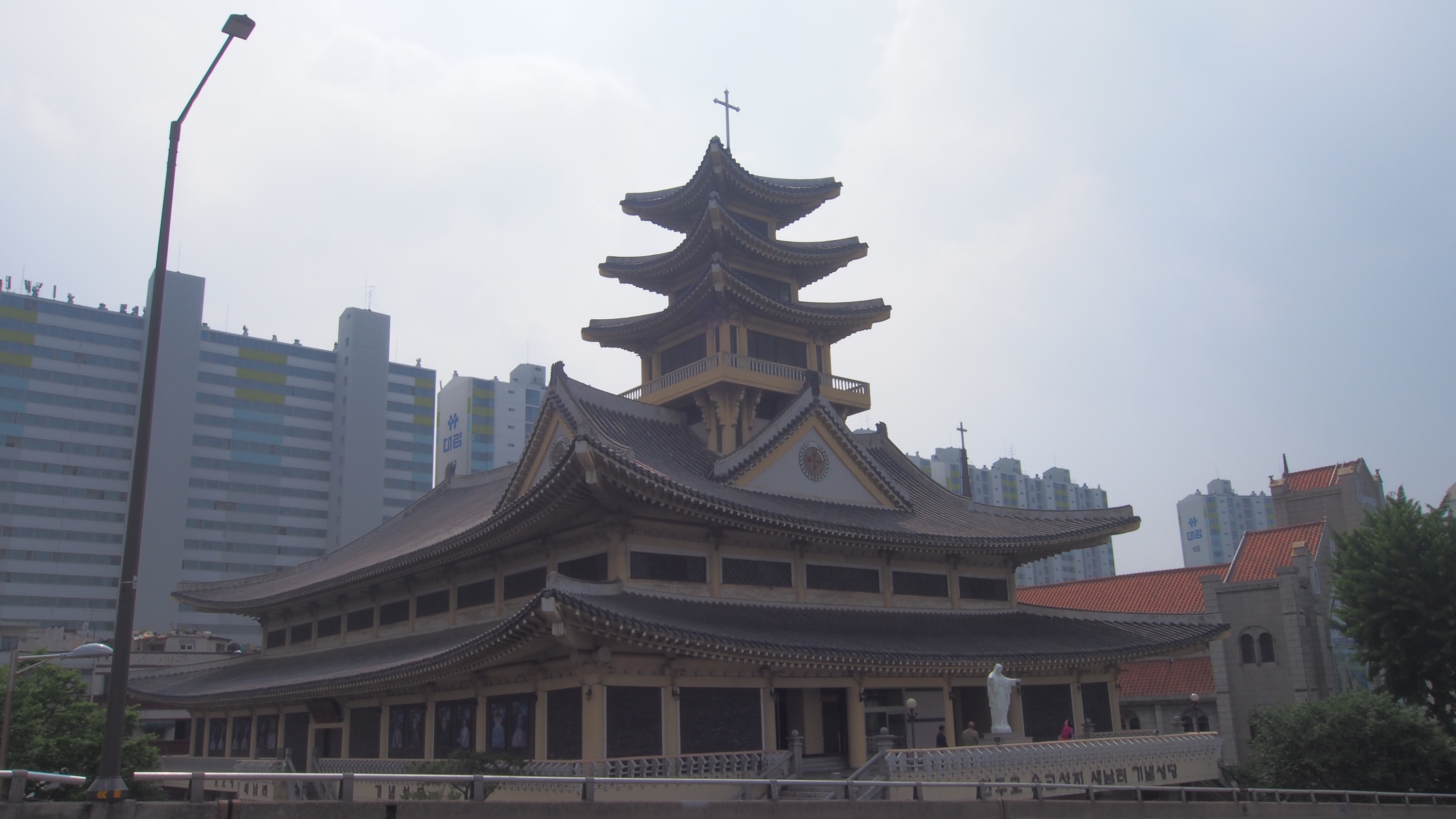 The distance was a lot longer than I estimated but it was a direct-ish route to get there and I had a chance to stop and take pictures of the interesting things along the way. One of those was a Catholic Church built like a pagoda. It was quite beautiful. I went inside and sat there admiring the strange altar they had built. There was a commemorative stone marking the occasion that Pope John Paul II was there. It’s been a while since I’ve been inside the church and as I sat there contemplating the lights began to turn on illuminating the scene in front of me. The attendant was preparing for some kind of service that was about to take place. I felt at peace when I left and continued on.