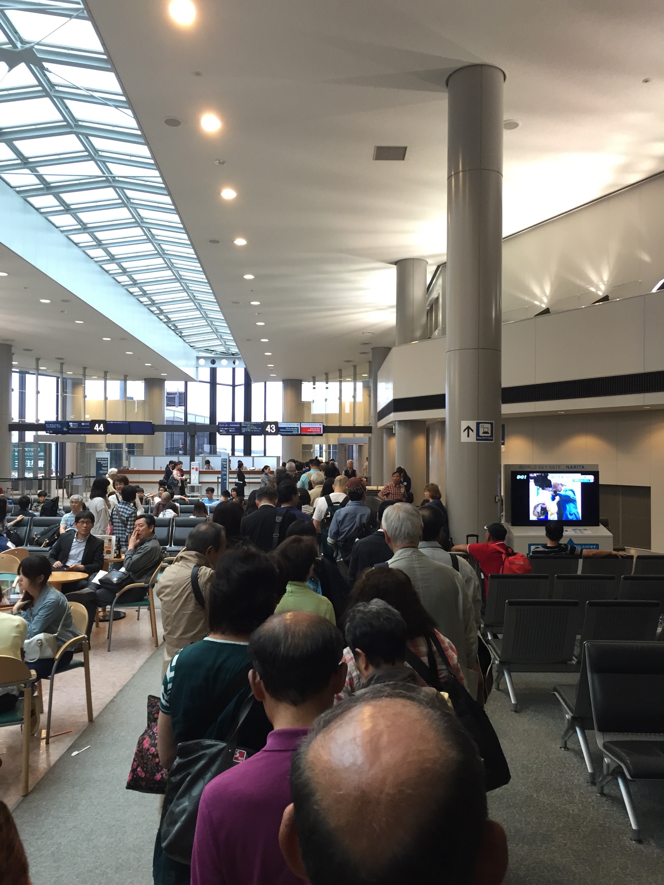 Checked my bags in and have my boarding pass. Mercifully when I was checking in my bag I got switched to the emergency seat by the window. I had the middle seat before. The check in procedure was an unnecessarily complicated one with a check in electronically first and then another line for the check in for baggage drop off. It’s done now though. I got myself a cup of coffee and am relaxing in the lounge debating when I should go through the passport procedure. It’s a dreaded process for me. I think that I’ll just drink this coffee and go in. The flight doesn’t leave for another couple of hours anyway. There will be some more time to express what I have going through my brain. It’s not that there is too much strain inside. I have just a few things that will bother me for the next little while and that is money and finding a place to live. What will it be like being back doesn’t bother me as much as I know what to expect kind of.