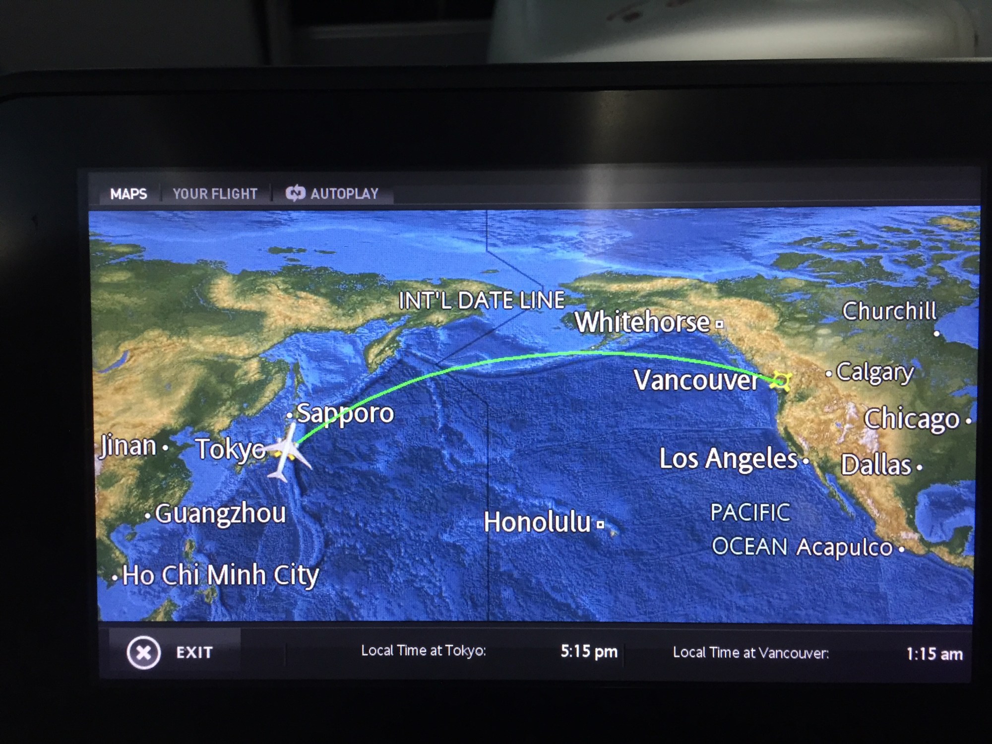 About an hour left and not much sleep last night. Finished watching Ex Machina and it kind of was thought provoking in tune with my recent thoughts about AI and singularity. It was quite compelling although I felt uncomfortable watching it towards the end as she put in new skin and made herself feminine. The old man beside me and the people watching behind me… it just felt a bit too much. Good movie though. We are traveling at a 1000 km/h! There is less than an hour left!!!
