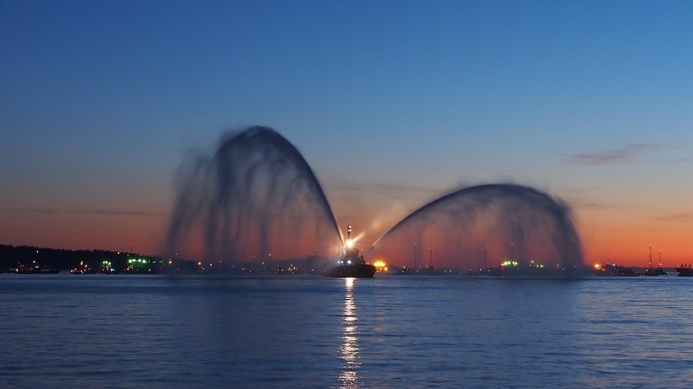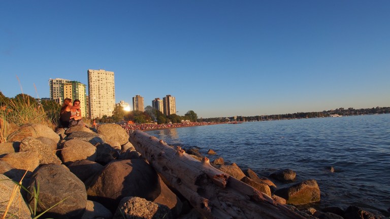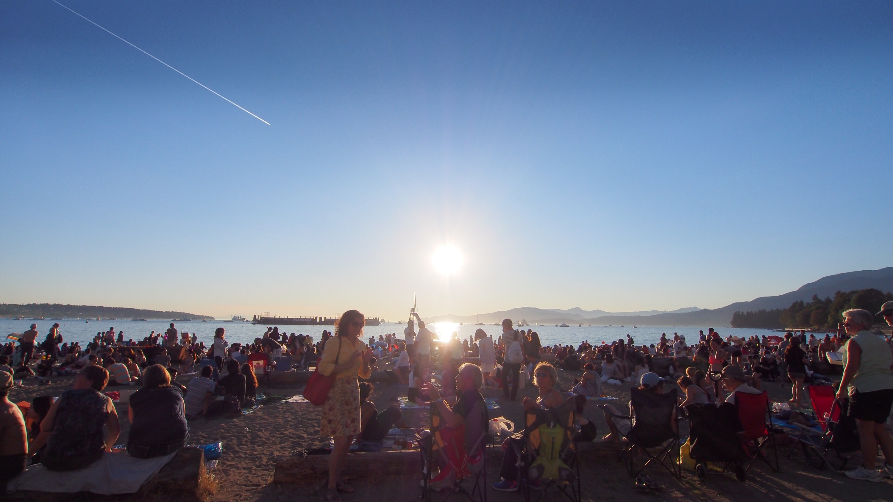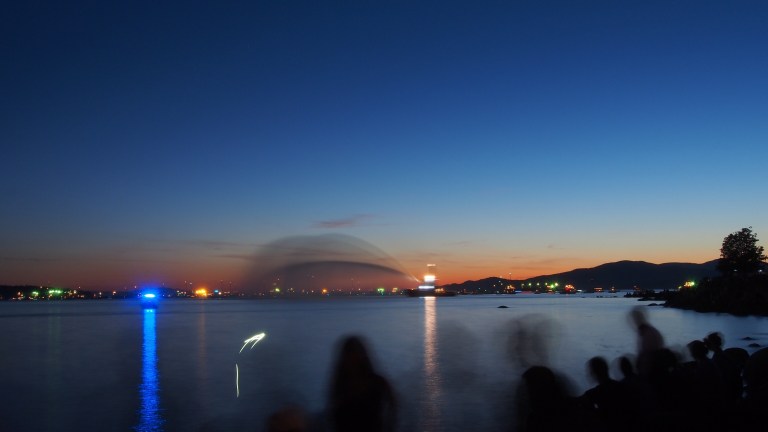 A little later now. The sun’s behind the mountains. The sunglasses are stowed away in my bag. In trying to figure out if the kids beside me are really stoned or not. They are performing some maneuver with one of the coast guard vessels. So I’m watching instead of filming and then I missed it. That’s a display for us in attendance. Damn it they did it again and I missed it! I know what I saw and I know what I wrote. I guess I was in two places at once after the other. They are stoned or something quie animated. Some rules are being laid down by a girl to the guy. There are loud squealing sounds. They are talking about someone who’s not present. I’m eavesdropping as I observe the woman clamouring on the rocks to pose for a shot. She clearly doesn’t want to get hurt. All the city parks including the beaches are now smoke “free”. With the hot dry weather lately there is also public shaming that goes on through social media. I’m hoping no one sits in front of me. That old couple got the glare from me. They’re in my old spot.