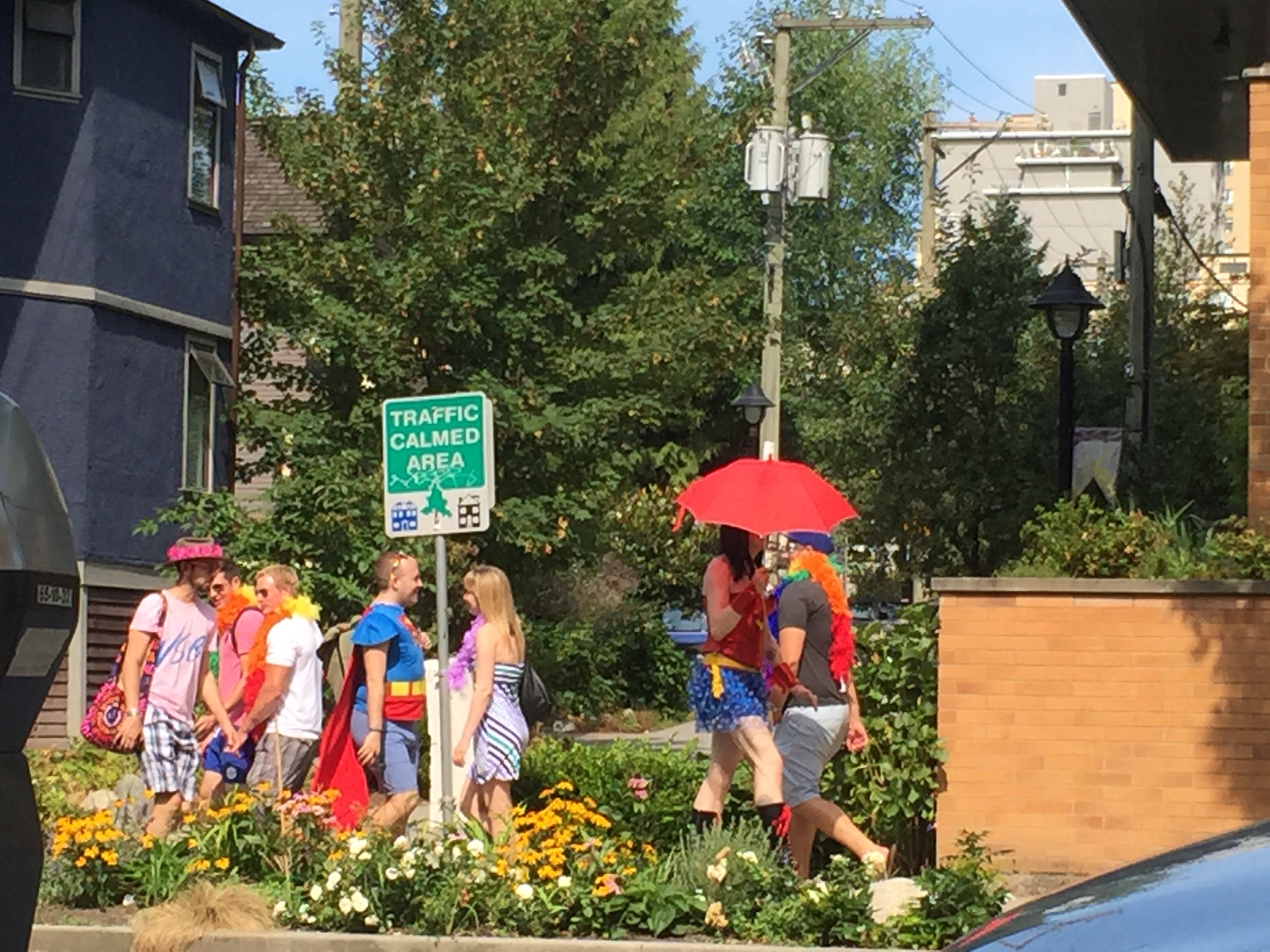 As far as ambient levels of noise Vancouver can be quiet. On this day however there is a higher level of amplified music in the air. It may be due to the Pride parade that will snake it’s way through the city. There are more people out in the street making their way down to the beach where the parade will terminate. The parade will start when I start my shift at eleven. Part of me is glad to be avoiding all of this and part of me wants to see what all the fuss is about.