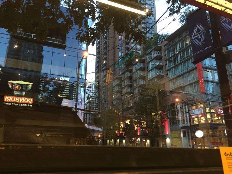 Strange coincidence to see them walking down the street later. We just had a visit together and they were going to go to some secret dinner dressed all in black. It was over by the time they got there. The hipness has a time frame and a limit. The shops on Robson illuminated the conversation as we dreamily walked on in our own directions. The effects of the earlier session still having a hold.