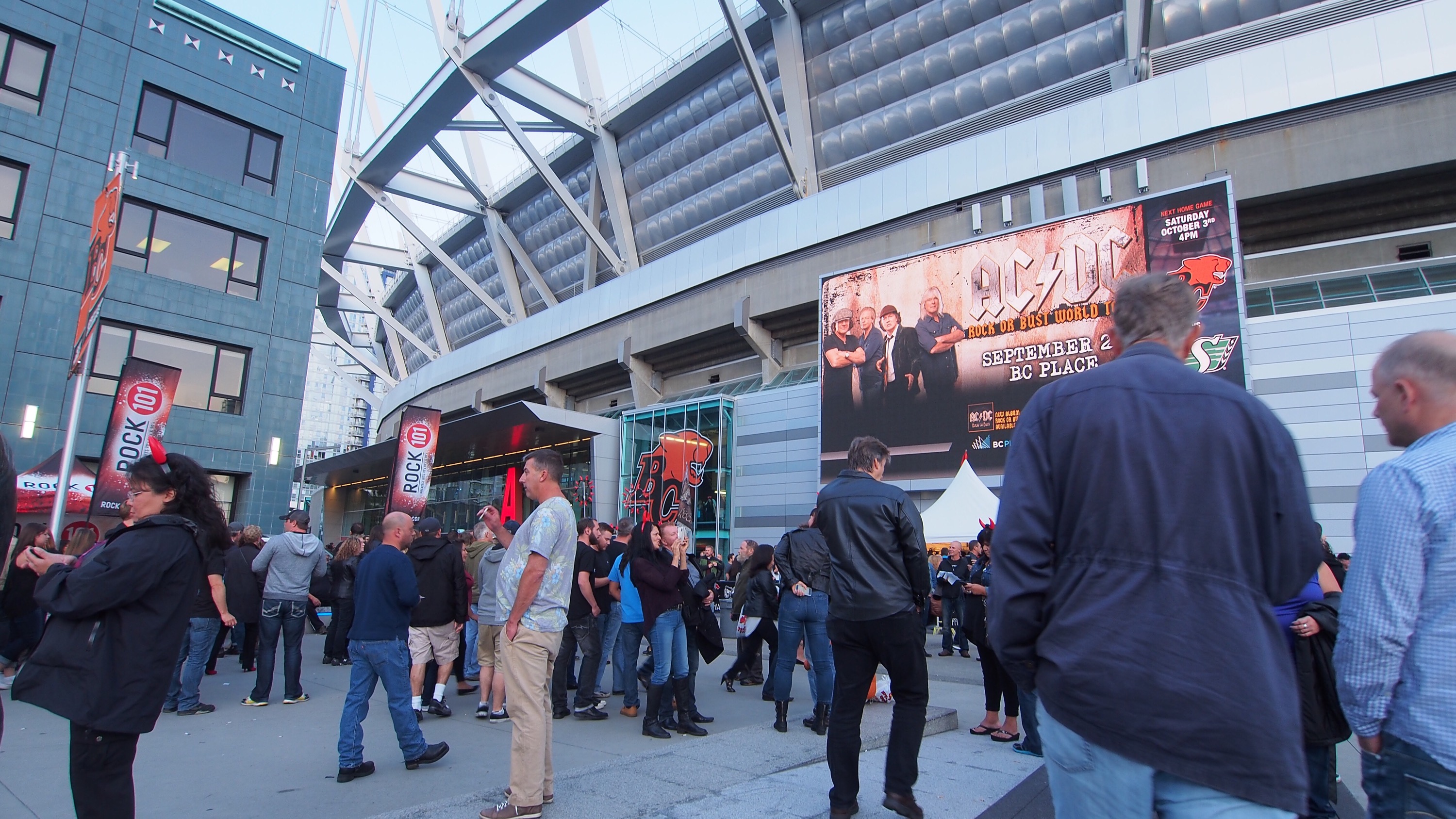 AC/DC were having a concert. They had attracted a whole bunch of fans some of whom yelled their excitement on their way to the stadium.