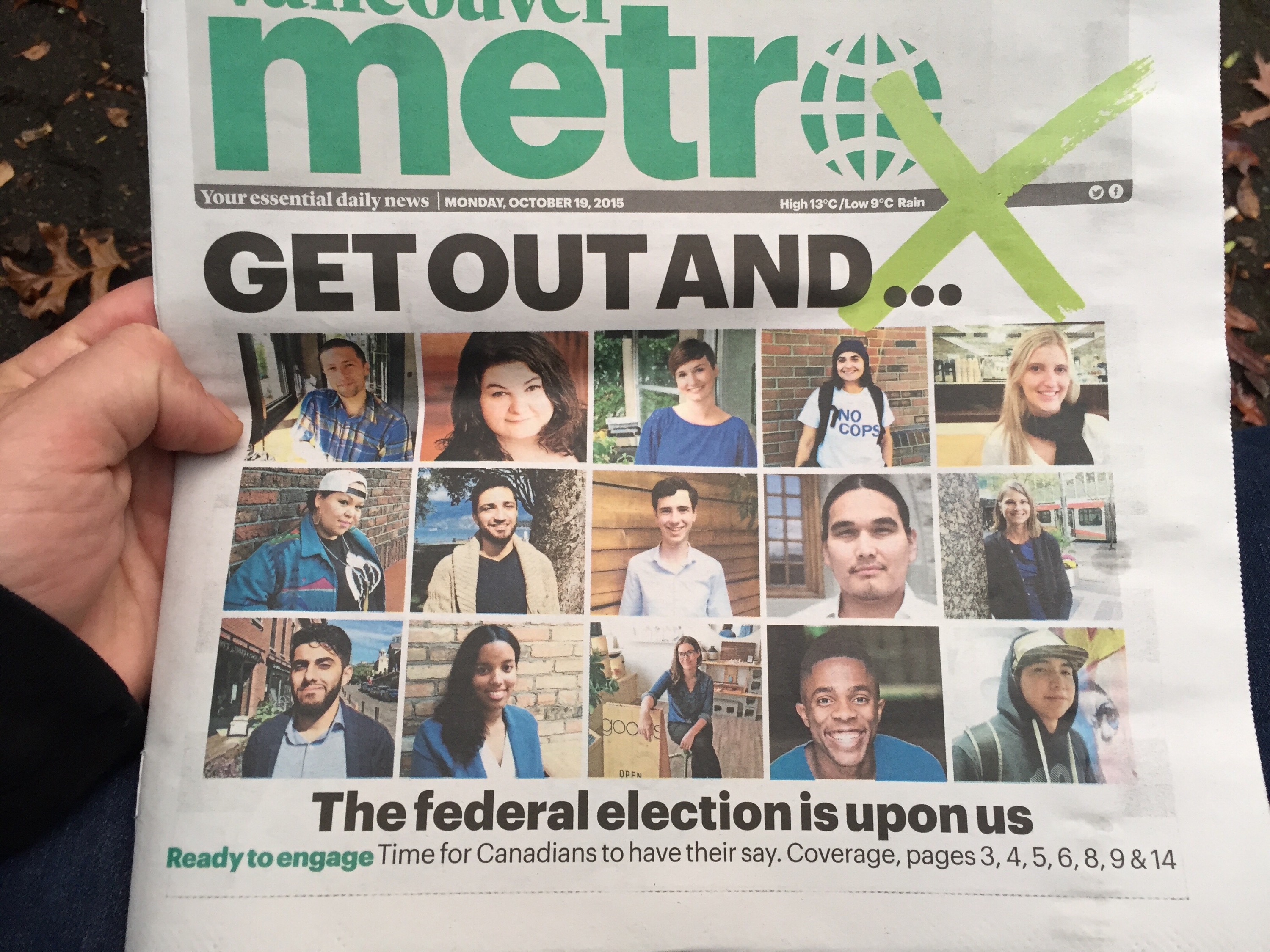There are four leaders that we are deciding between. The current Prime Minister Stephen Harper of the Conservatives, Tom Mulclair of the New Democratic Party, Justin Trudeau of the Liberals and the Green Party leader who’s name I can’t find in this Metro Vancouver. It’s easy to see what the Greens are all about. They are about the environment and they would center their policies around these sorts of ideas. The conservatives have been in power for close to a decade and in this time their strategies and politics have been a dirty affair. “The Harper Government” has emulated American Republican strategies and policies instead of perpetuating the “Canadian Values” that have made this country great. I’m not the only one who has felt that. I am not the only one who has also felt the erosion of an economic optimism that is causing me to seek my fortune overseas. What happened?