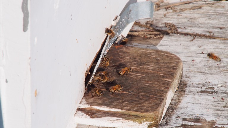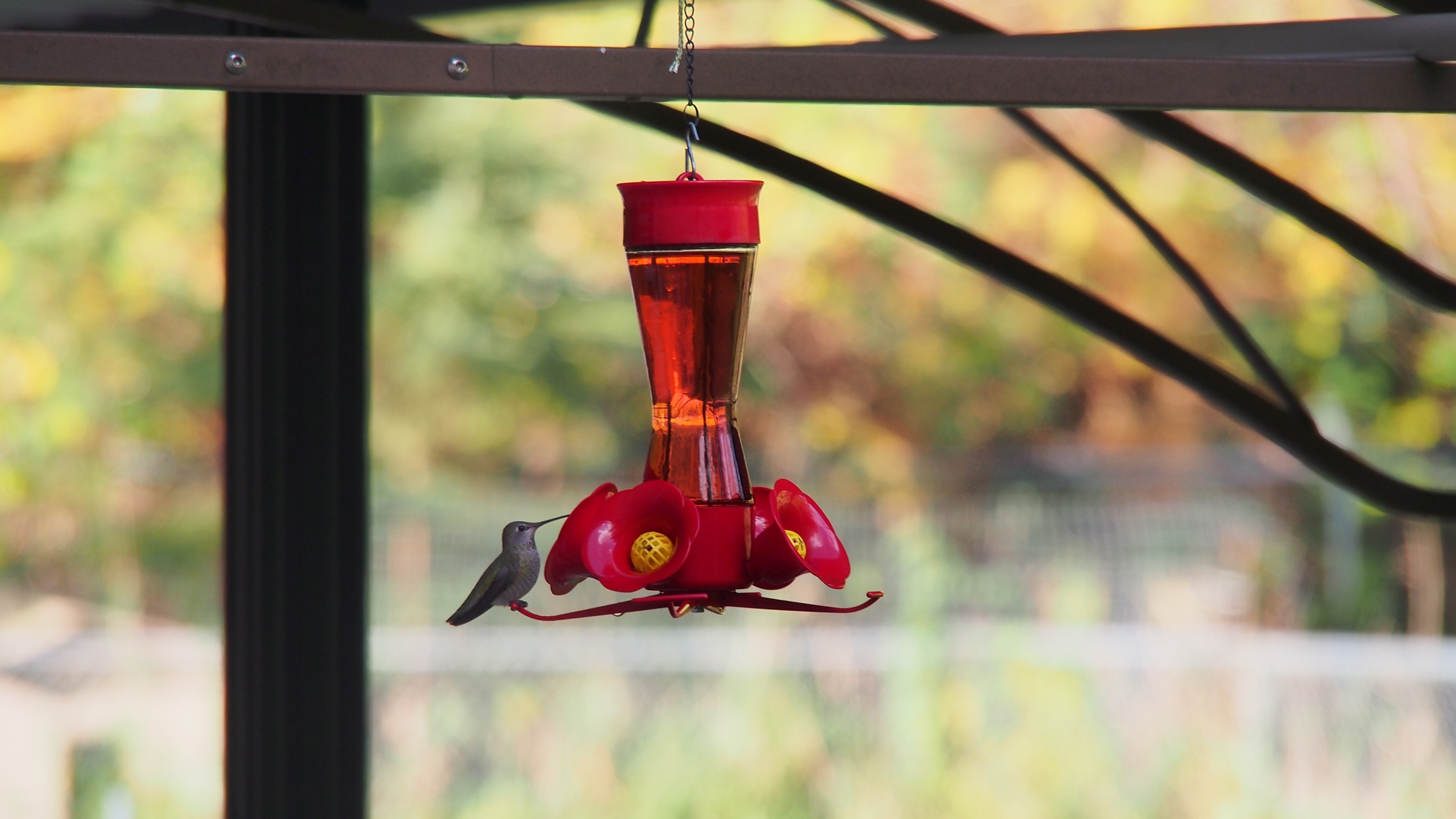 I wondered around and played around with the lens. I like having the ability to focus. Those bees are still buzzing around. I would think that they would have been hibernating by now. Still I got as close as I felt comfortable. Getting a bee sting would not be a cool thing right now. It’s an experiment to see how the lens performs. I took some shots and wondered back determined to get a good photo of the hummingbirds. The goal is to get one midflight in front of the birdfeeder while it’s stationary. I wasn’t entirely successful but then I noticed a deer out behind the fence. It was really silent and I moved slowly to get a better angle but it slowly and quietly walked down into the ravene. There was no way of walking up to it without startling it.