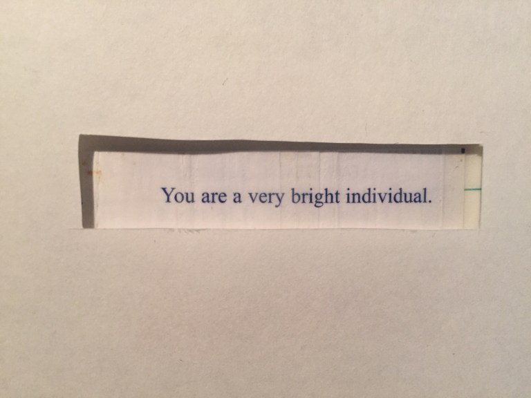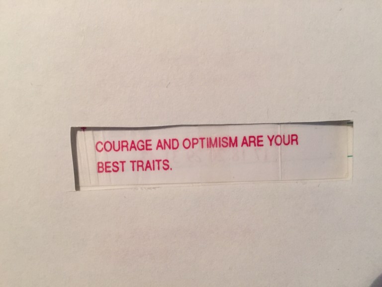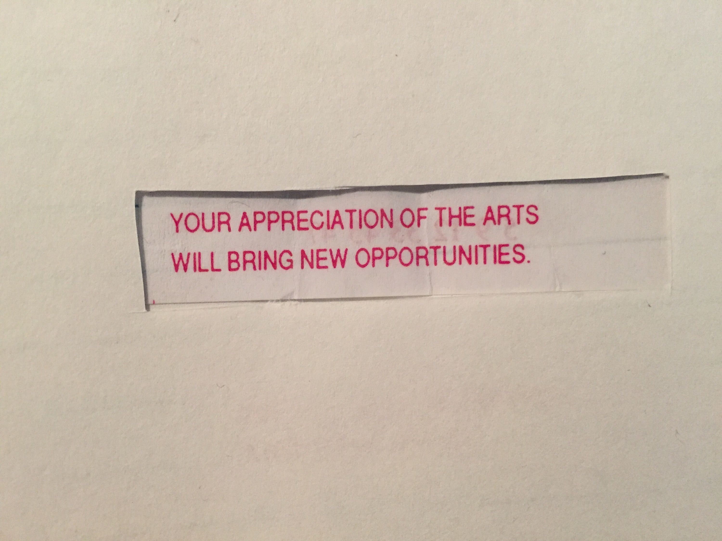 I’ve finally begun to sort out my possessions. The first order of business was just a general clean up. I have a habit of keeping the content of my fortune cookies and taping them into a book that I’ve had for a while. This book has some of my earliest writings. In fact it’s a volume that I’ve never finished. I just started to paste things in there that came inside a cookie. All those fortunes from all those years have said something positive to me.