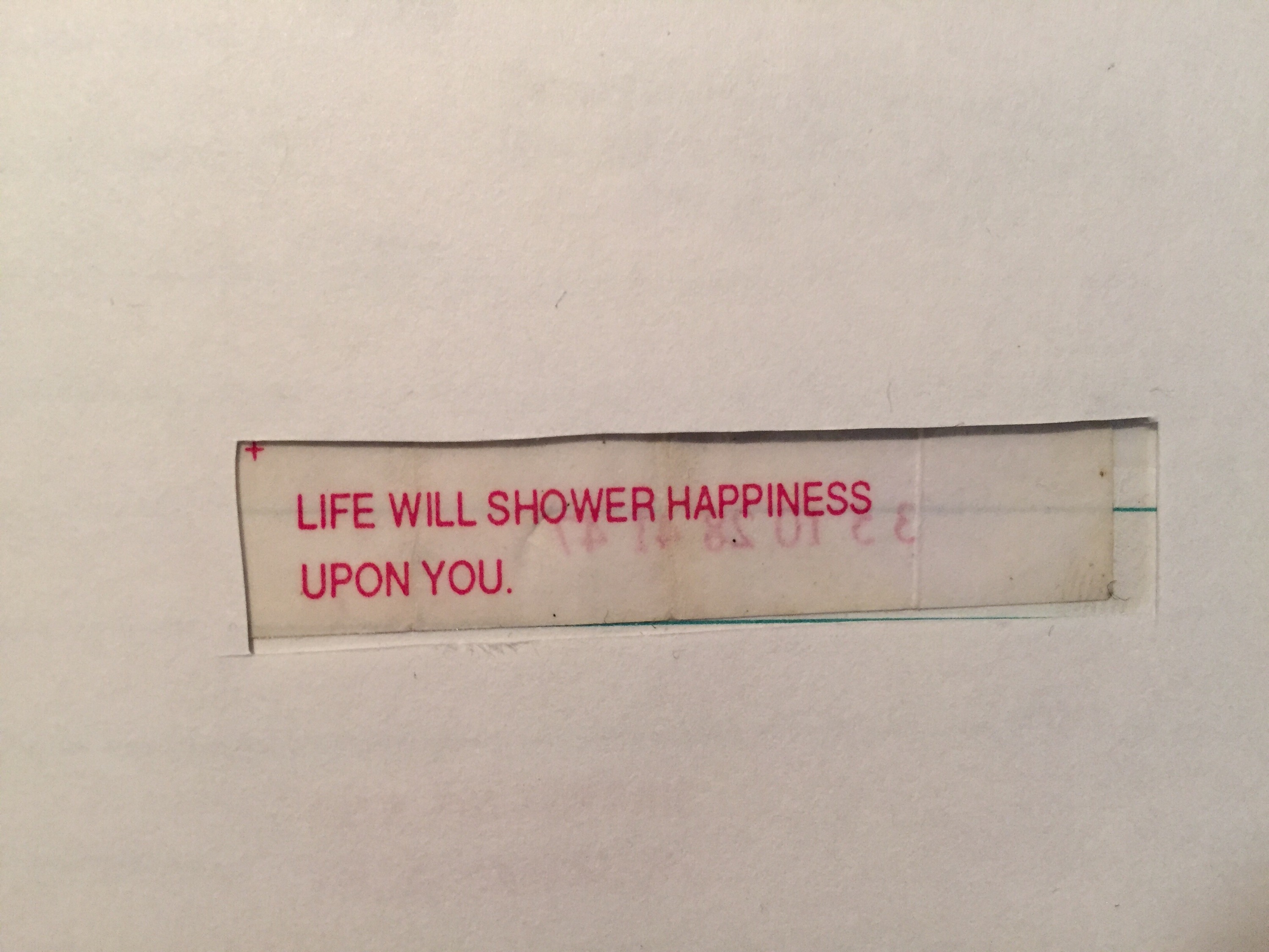 I cut out a piece of paper to frame each individual fortune that I wanted to take a picture of. It is way to focus on each one and what it has to say. Some are incredibly accurate especially considering that most of the ones I took a picture of were recieved since I got back here to Vancouver. Now they can symbolize the changes that are about to take place. They can now claim to be prophetic even though I know that their occurrence is random. I’ve received the same fortune a couple of times and I wonder now if they have any more significance.