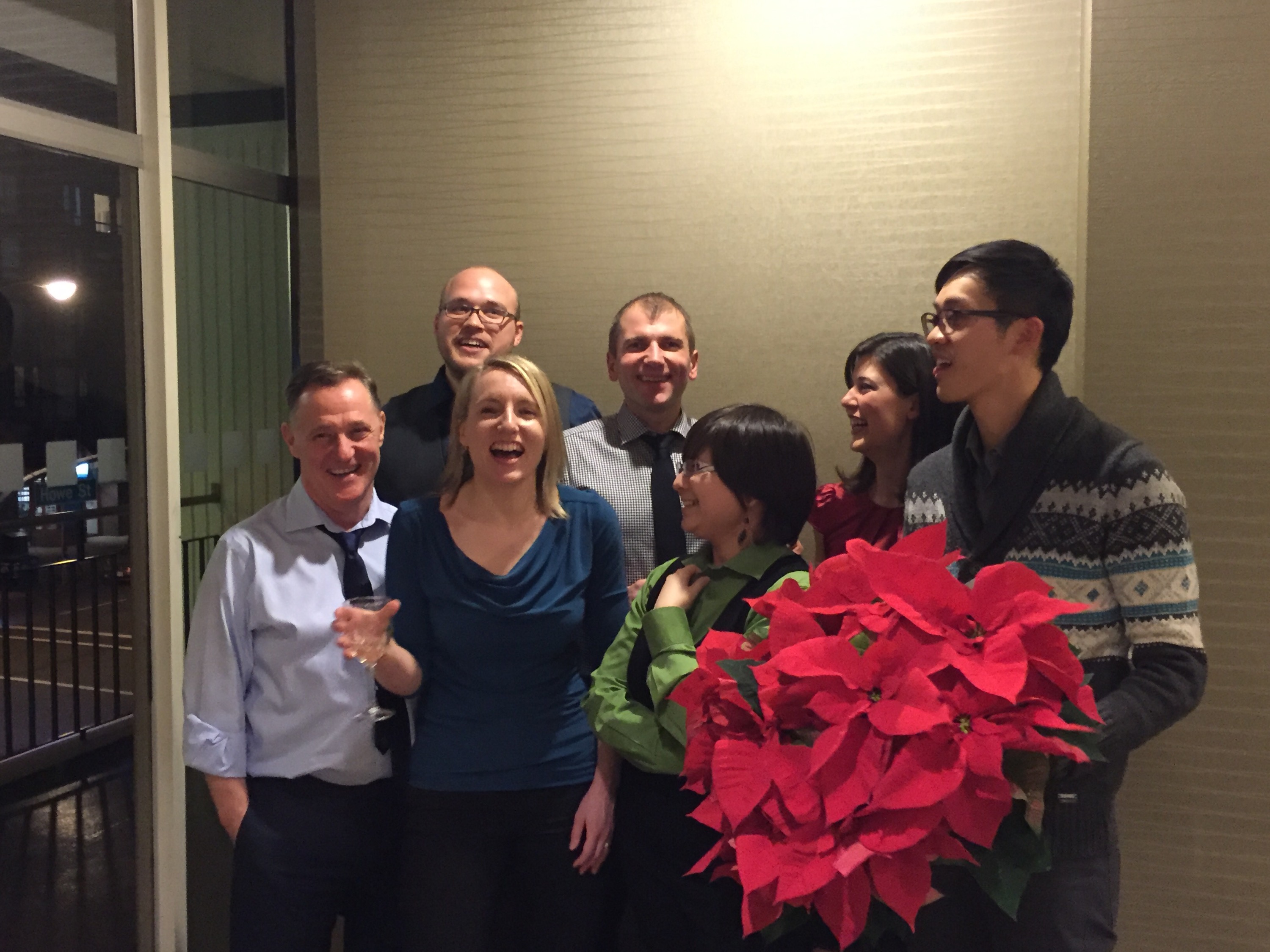 We found ourselves sitting at a table that some of our other colleagues were sitting on. Some chose to bring their partners with them and they were nice to meet but it seems like it changes the dynamic a little bit. Some of the docs had their partners with them along with many others scattered about. This department has carried on for quite some time. There were some preliminary speeches and then the drawing of who would be the first to go to the buffet. There was a lot of food and luckily they provided us with a big plate. We ate and talked laughing merrily at some of the silly and serious discussions we were having. The docs provide us with this function as a thank you for all the work that we do as the rest of the staff. The place wouldn’t work without the whole group of us working together. After dinner and prizes it was time for the dance off. Over the course of the next few songs a select group of judges tapped those who weren’t worthy until only two remained. They danced to some great oldies tune the older tech and the fresh student. They showed their passion and charisma through various gyrations and coordinated movements one desperately trying to outdo the other. At the end the judges had a hard time deciding the winner so that they split the top two cash prizes. They also got a round of applause from all that enjoyed their effort. At some point it was time to go and off I went for a rondezvous but not before getting those that I work with together for a group pic.