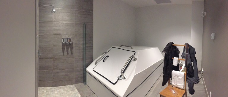Floatation or Sensory Deprivation is a practice where one floats in a specially designed tank that is filled with water that has dissolved in it about a thousand pounds of Epsom salts. The water temperature is close to body temperature and one floats effortlessly inside the light proof chamber. The salinity of the solution makes one feel weightless thus combined with the darkness and silence one’s body and mind relaxes achieving a meditative state. It is a therapeutic experience rasing the levels of dopamine and endorphins while lowering blood pressure and heart rate. “For those seeking creative exploration, deep relaxation and meditation, and general well being, a float tank is the place to find it.”