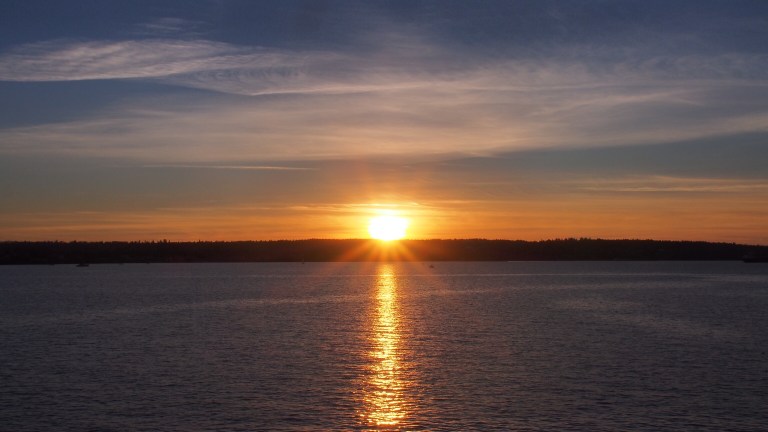 We walked arm in arm down the road in the relative darkness of the chilly night. Once the sun set the temperature dropped. The air around the city has been remarkably clear despite the grey that is pushed towards the coast by the barrage of weather systems heading our way. I showed Barbs the satellite animation. Ive been watching the cloud cover lately to see if there would be a remarkable sunset in the making. I’ve found that some cloud is needed to turn the setting or rising sun into time lapse gold.