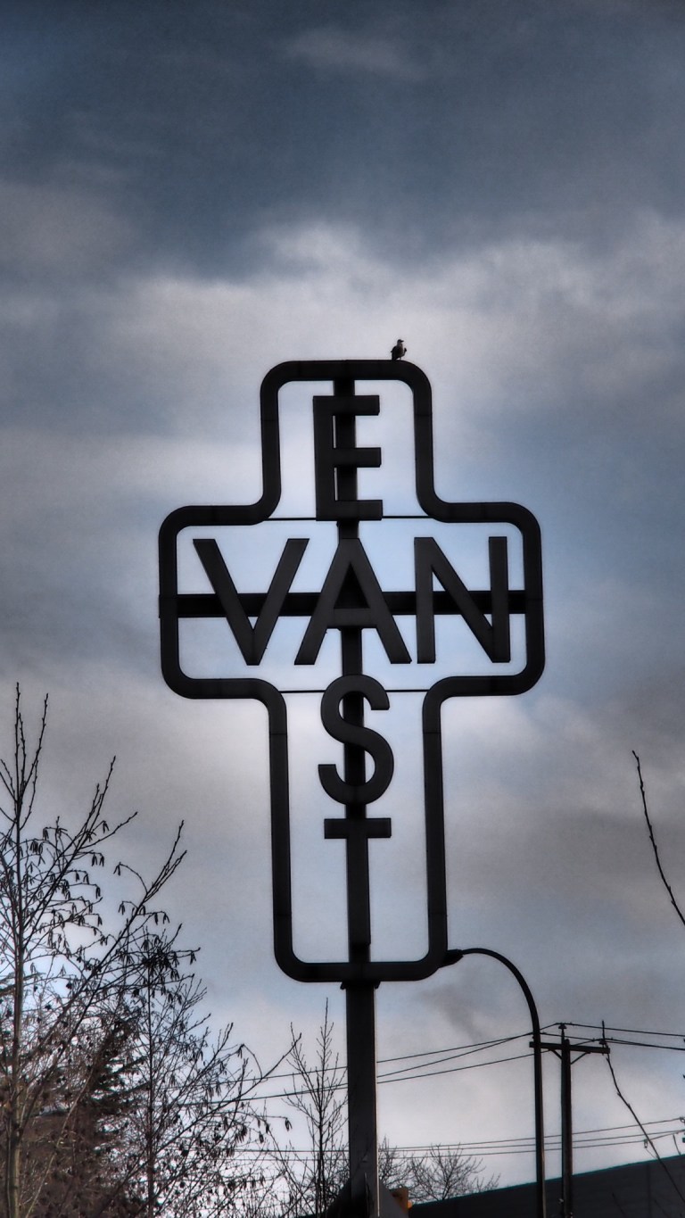 Since I am here I might as well get a photo of the East Van sign. It was a public work of art that was introduced just before the Olympics. It still stands there and to get a good square photo of it I had to find a good vantage point. It was mid afternoon and the rain came back having been absent up until now. I walked by a Timmies and decided to have a snack to tie me over until the afternoon. I had been arranging my schedule to accommodate some social functions. One with Barbs and one with Danny Boy. It would be a few hours yet until that would happen so a snack now would be good. The walking was doing me well. Just before I got to the east van sign I had a chat with my dad. He was a bit apologetic about his behavior and I apologized for mine. Life is too short to be upset at each other. It made me feel better to have that talk with him and with my mom earlier. After the photos I was going to go and visit the dispensary for the last time before my departure.