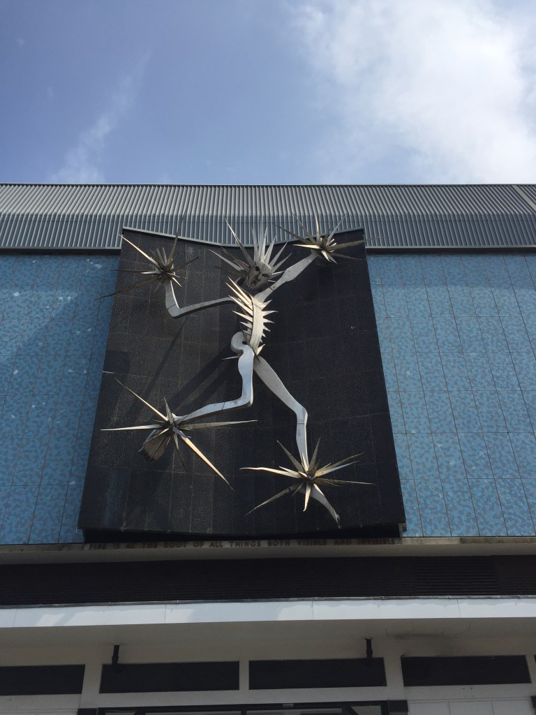 When I got off the train I walked towards the city centre. The area is called Henley it has the core cordoned off from the car and inspirational quotes lining the paths and some of the seats. It’s built on a slight hill so as you walk up you look up towards some of the buildings rising above. Their facades are varied depending on when they were built with the more older buildings a bit more ornate. There was one brutalist concrete structure imposing in its glare and a multi colored glass modern structure as well. It’s as if there is one example of each architectural period that has happened before. Our modern buildings are more technological the materials are engineered to serve some kind of function back then it was different. The structures themseles firstly had to stand. The brick is a convenient material that weathers really well. Almost everything here is clad in it its red color having different shades depending on age. In the sun the brick work stands out really well. The way different patterns are incorporated into the wall. There are angles and bulges and different colored brick. Limestone lentils used for support over windows and doors.