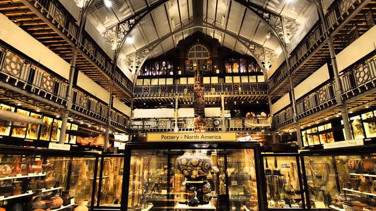 OUMNH as it’s known affectionally is housed in an old Victorian building that has a glass ceiling. Giant skeletons hung suspended from the ceiling in a great display of what lies beneath the surface. There were even reproductions of dinosaurs which served to show how big they were in real life. The hall was lined with statues of men of renown from history. Some were known to me others were not. As I walked around the area there was another room called the Pitts Museum. Inside were cultural artefacts from all over the world. These artefacts were arranged according to their use or origin. There was a large totem pole from British Columbia, Maori cloths and costumes, Inuit furs and clothing, a surprisingly large section of hukas and pipes, masks, pottery, writing instruments… A lot of stuff confined in a small place. Both of these rooms were not that big.