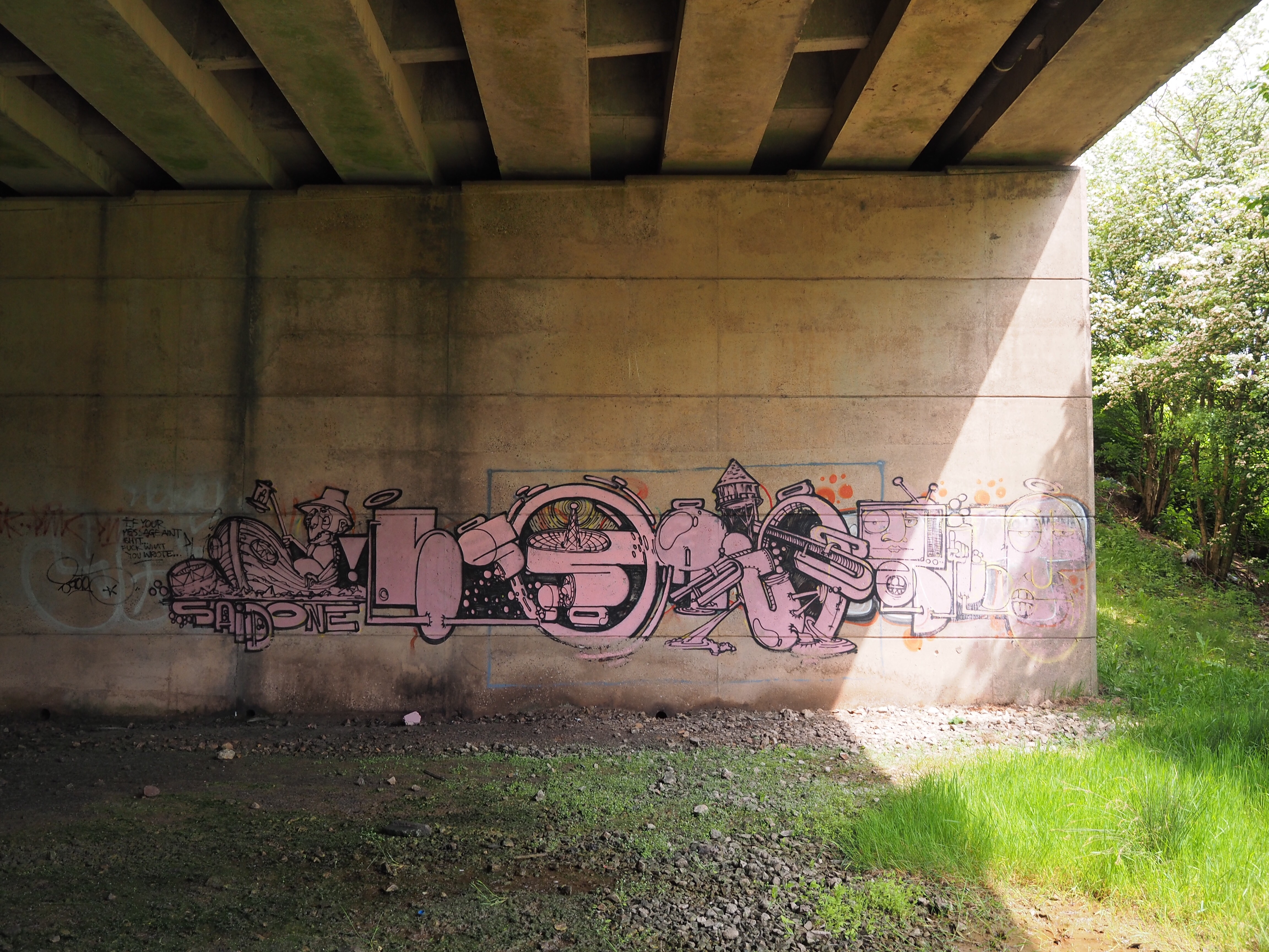 Peeking inside the first space to my surprise I saw intricately spray painted murals. Under here one could take their time expressing themselves through the creative use of paint. These long concrete walls are a perfect canvas much of it unspoiled by any markings.