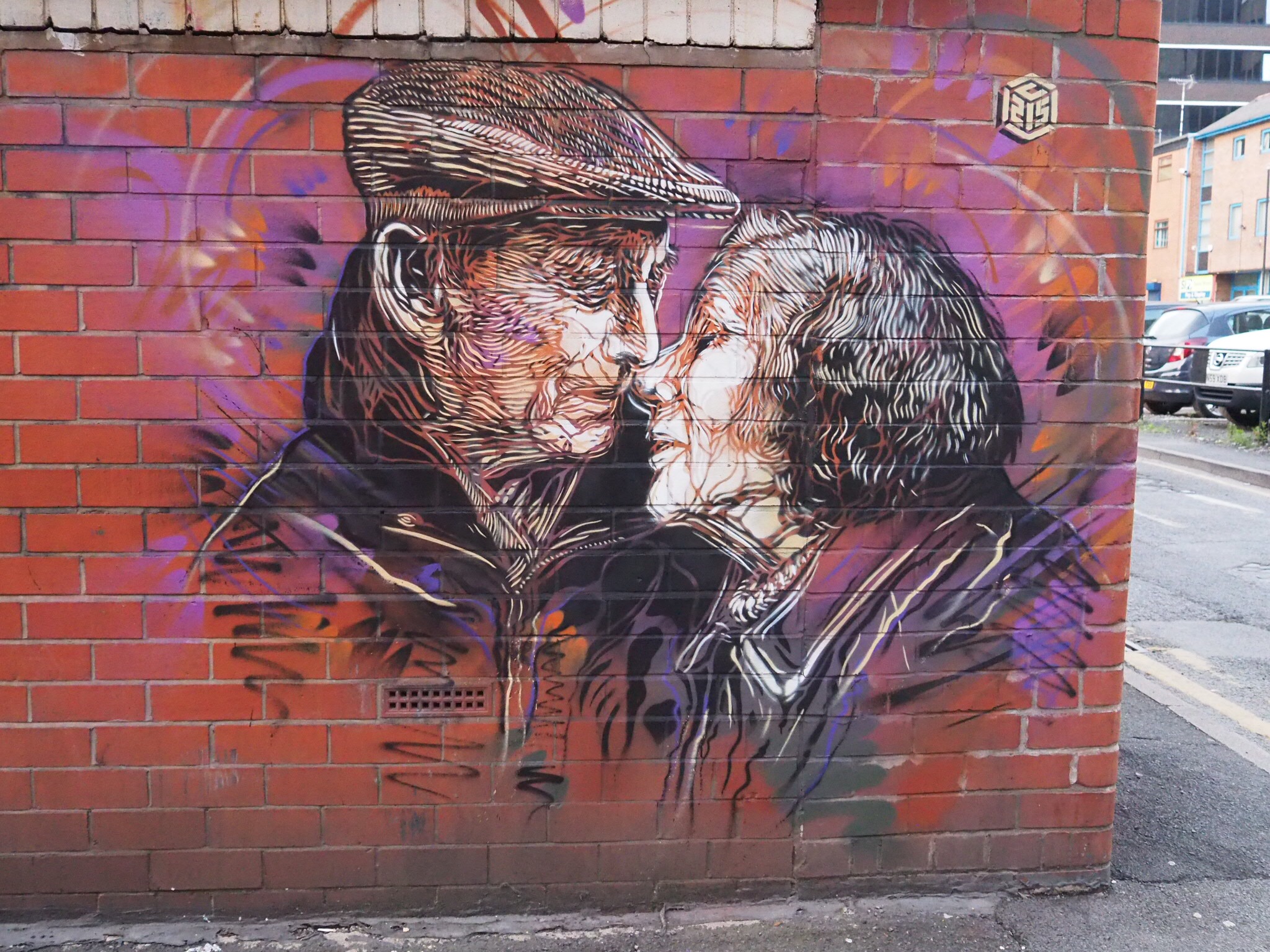 My mate wasn’t aware of this festival happening. Since we always gravitate to this Northern Quarter anyways we explored some of the alleyways in between pints and found ourselves inspired by what we found. Along our journeys others were doing the same thing stopping and taking a photo of something special. Something that drew us to this area to contemplate the meaning behind vision. They were all really good and amongst the artists that were featured there were the pieces that have graced the walls for some time already. Pieces that have been there for a while that added to the ambiance to this part of Manchester.
