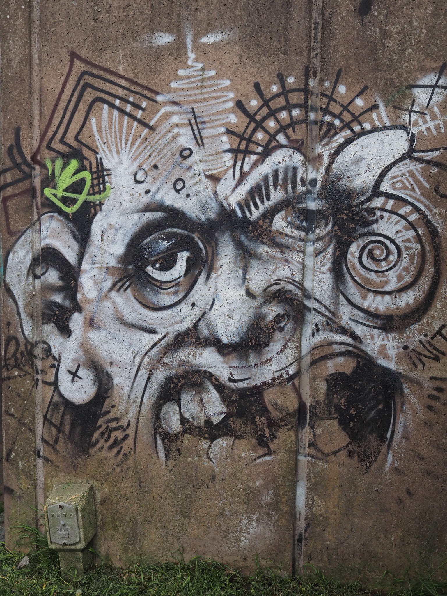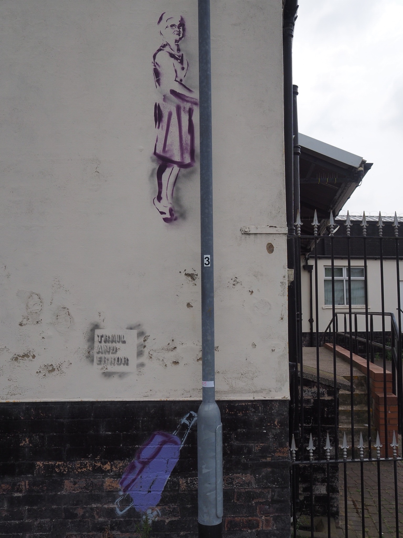 The River Trent that gives Stoke on Trent its name runs for a portion of it parallel to the train tracks as well as the A500 that is often jammed with cars during the weekday. The need to walk and enjoy the scenes of a different environment was strong. I also wanted to chat with Ba(r)be from a new location for a change. There was some promitive and sloppy street art in the various locations that I passed along the way. It spoke a little about the town and I figured out that “Trail and Error” is part of a promotion for some kind of a short film produced at the local university. It explains some of the stencils dotted around the city but not all of them.