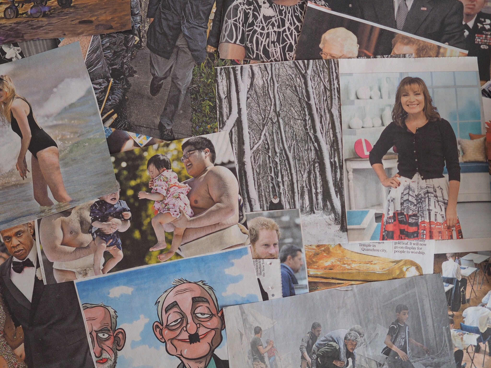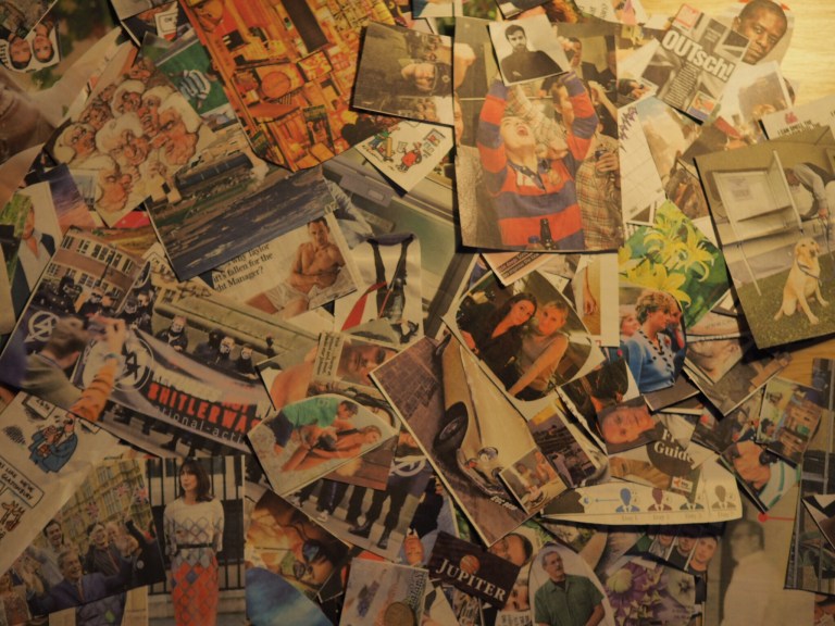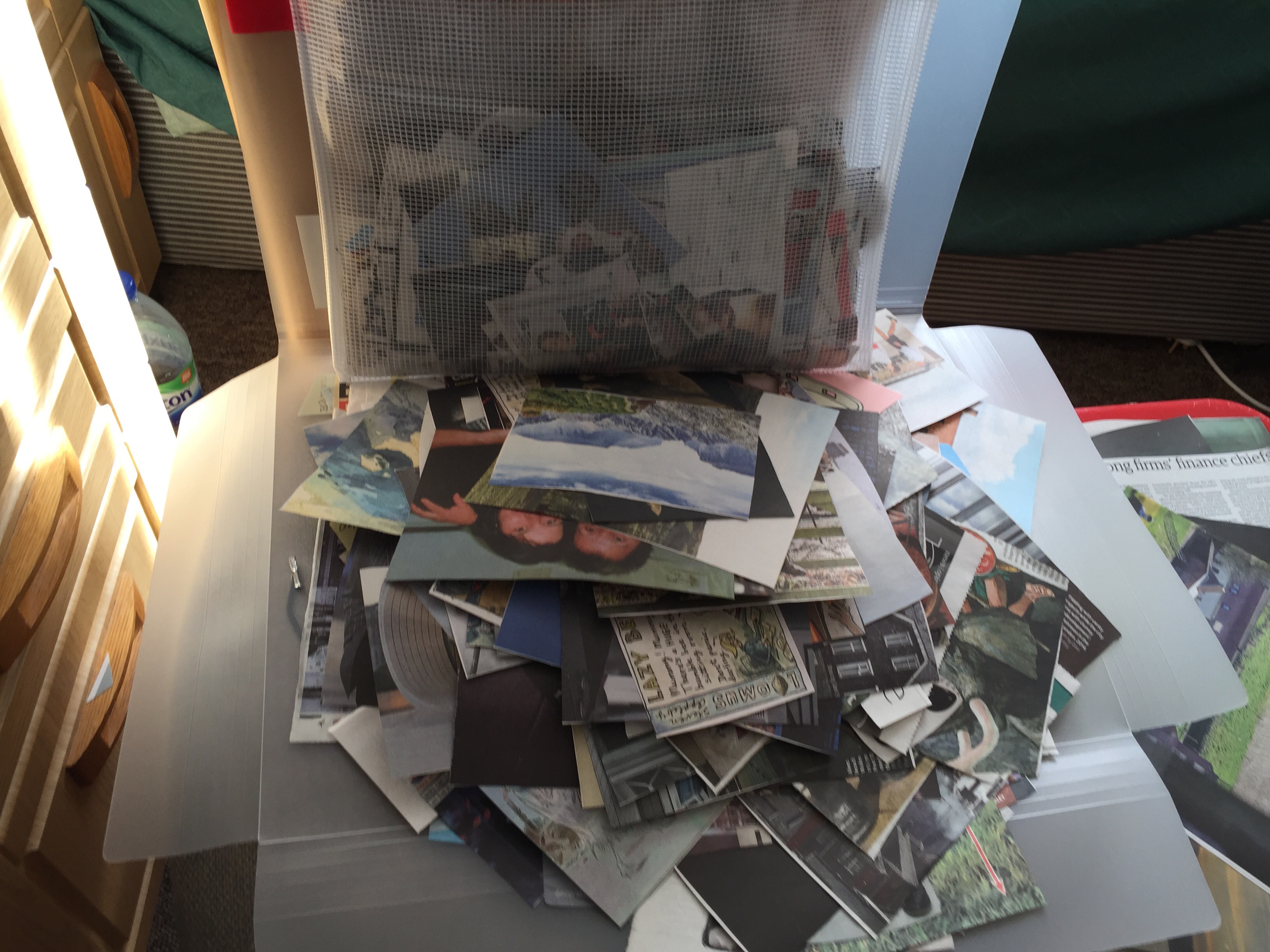 Small little squares a lot of little heads. All kinds of different shapes. Some puzzles as well as expressions and different places. There were graphs and maps, war and terror, laughter and joy amongst other things. The scraps so far filled a bin bag and what I kept fit into a couple of folders that I bought specifically to house all that I want to keep. I still need to fit all of my things into a suitcase when I leave. This is a process of consolidation in order to get raw materials for whatever will be created from this.