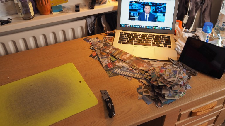 I’m determined to finish this project of mine. It will serve as the basis for another piece that will only be put together when I’m back in North America. For now it is something that just needs the work put into it. I am slowly approaching the present time with my collection of free newspapers. These sheets of paper that are just sitting there waiting to be picked up. Their pages filled with the most distilled information. What is deemed the most newsworthy. The things that just have to be known. A continuation of what’s cycled on tv.