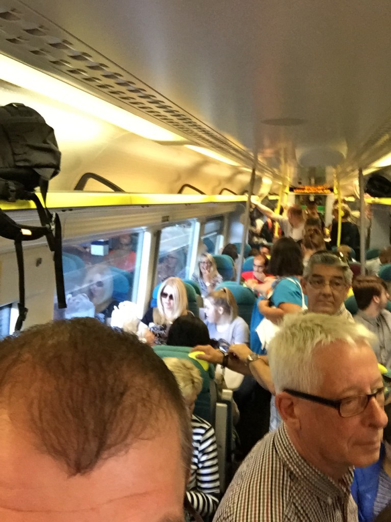 We chatted, hugged and kissed and then held hands as we made our way to the train. Chrl didn’t being as much stuff as I thought she would. It made the next phase of our journey easier. One of the train companies is running a reduced service and this has plagued London. The express train that normally runs didn’t because of no staff being available. The four carriage train that arrived was already full and we aggressively boarded it and became separated. It was a miserable ride for most people but for some reason I was happy as I kept glancing over to see how Chrl was doing. She got stuck by the doors while I inched my way somewhere to the middle. We were like sardines moving along the tracks in this tin can. The daily commute to work must be horrible as many people have voiced their opinion of this situation.
