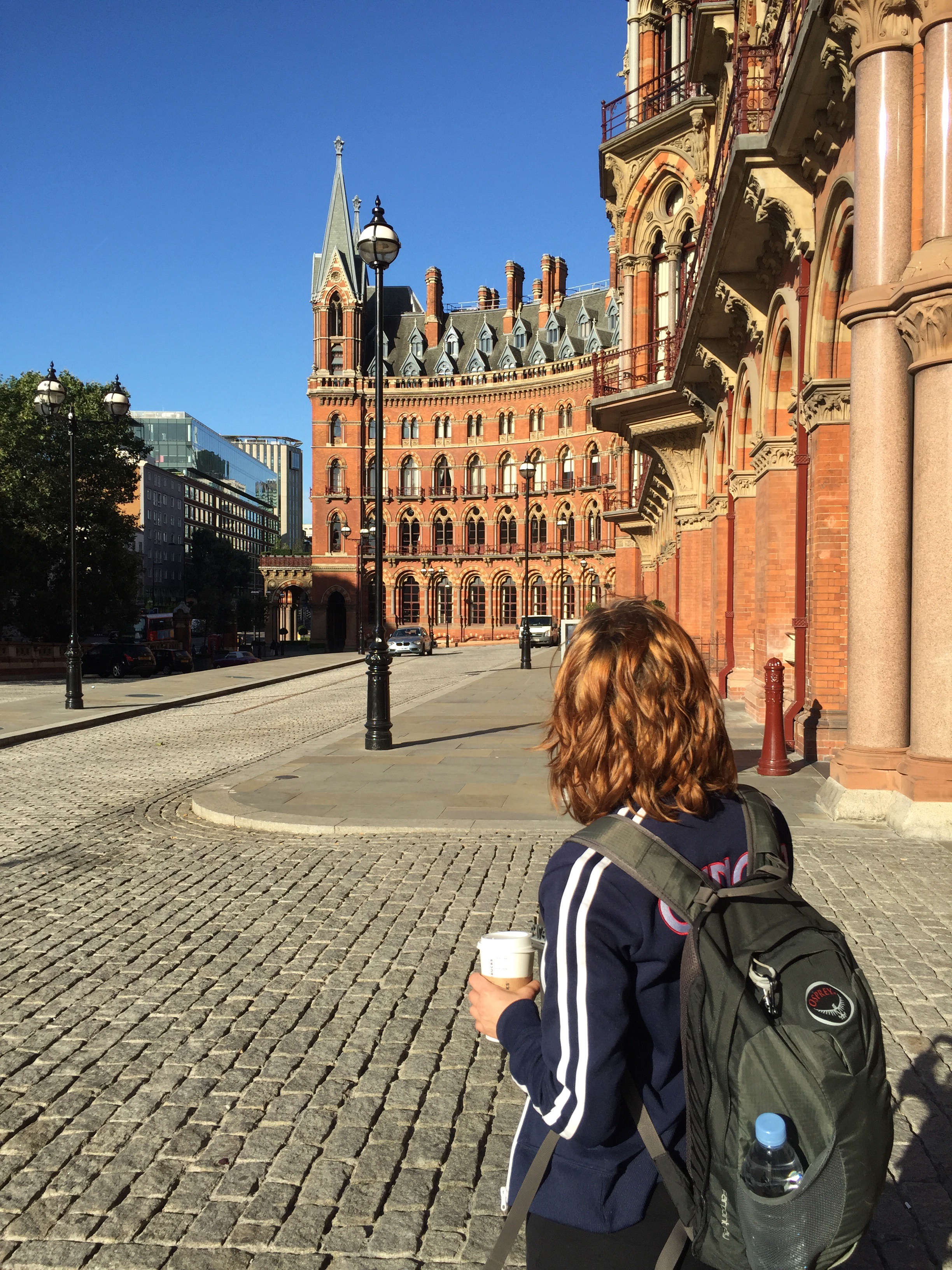 It’s nice being close by a tube station. A short walk wheeling our luggage through the early morning Monday crowd. It is a time in the morning just before many people get on for their commute. There is an elevator that takes you down to the trains. The ride down was tense with all the people inside of the car. We had each other to giggle with during our descent. Going to the continent feels exciting. The northern line got us to St Pancras and we admired the station while having breakfast and finding the giant statue of the reuniting couple. It’s shape but more importantly it’s scale leaves a bewildering feeling. There is a sensuousness to it that I can relate to as the days I’ve spent waiting for this trip clicked by. We closely recreated that first gaze into each other’s eyes at the airport. It’s one of the statues around London that Inwanted to show Chrl. It has that romantic feel to it or at least that feeling one gets when you haven’t seen someone you are close to for a long long time.