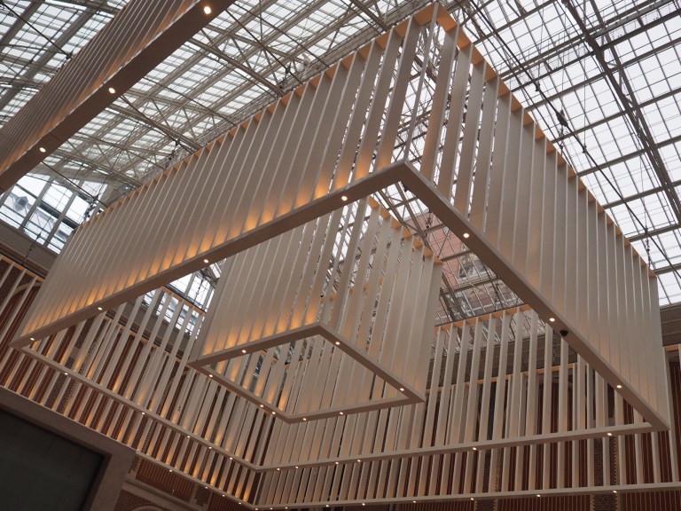 Getting to and into the museum and then checking our bags in took time and energy. We decided to have a coffee in the cafe located in the hall of this museum. The space is amazing and a cute older Asian couple from Texas was sat beside us. The wife had some questions for the waiter who calmly explained some things to her. We were read to order but we had to wait for them to finish. The tables are designed to seat eight to ten couples. With such a busy place this sort of thing is necessary to accomodate the throngs that come here. We exchanged pleasantries and a bit of small talk. They were on a river cruise and are retired. They met in college in Minnesoda and hail from Hong Kong.